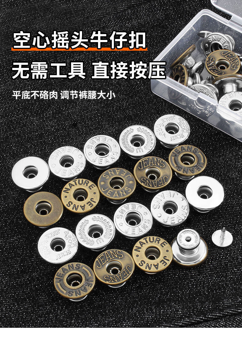 Qingyu Hollow Shaking Button, Nail-free Press-type Denim Clothes Button, Shaking Shaking Pants Waist Adjustment Button, Big Change on the Waistband, Hand-Pinched Hollow Style, Bronze Mixed Pack, 5 Free