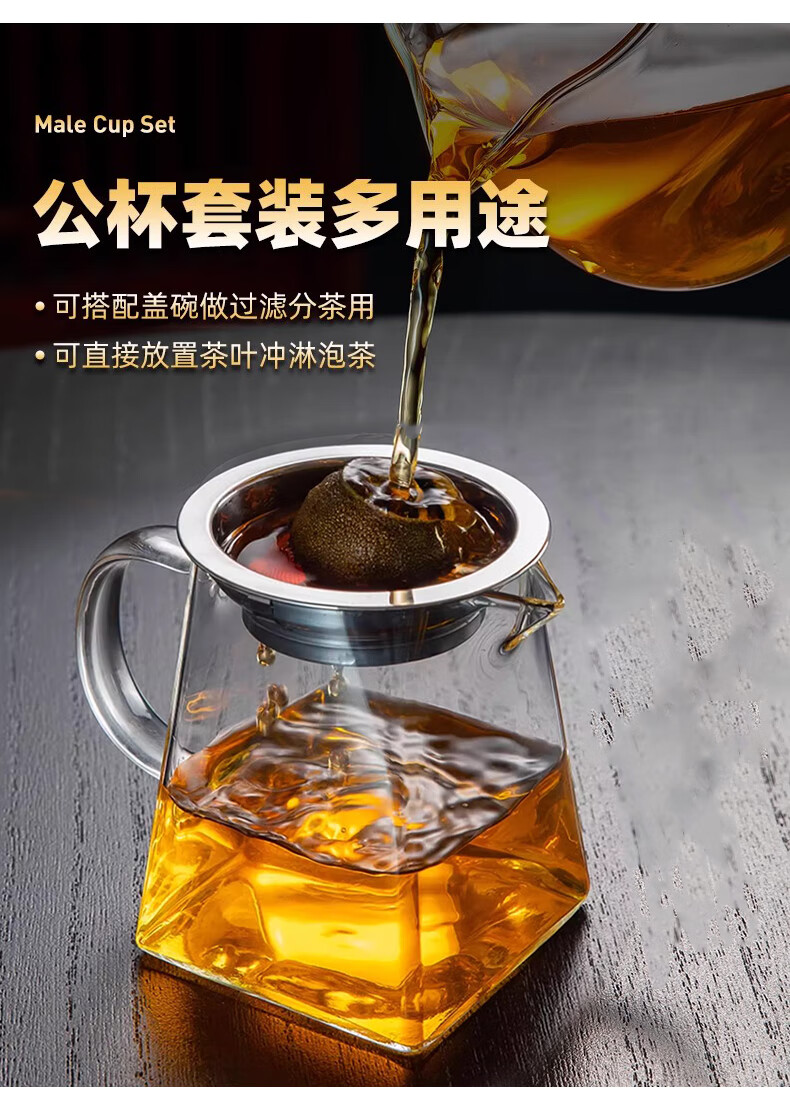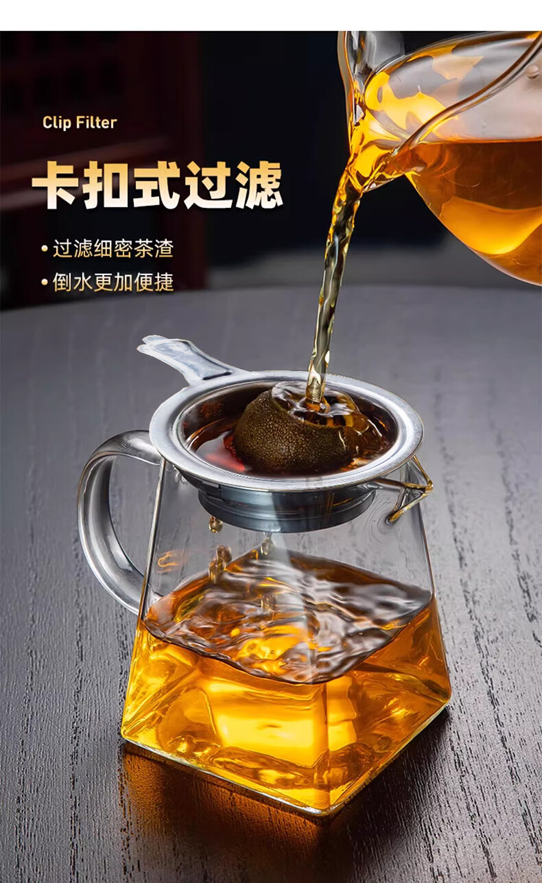 Tea fair cup, thickened high borosilicate glass heat-resistant tea filter, integrated tea set, special tea filter, tea dispenser, fair cup + buckle tea drain