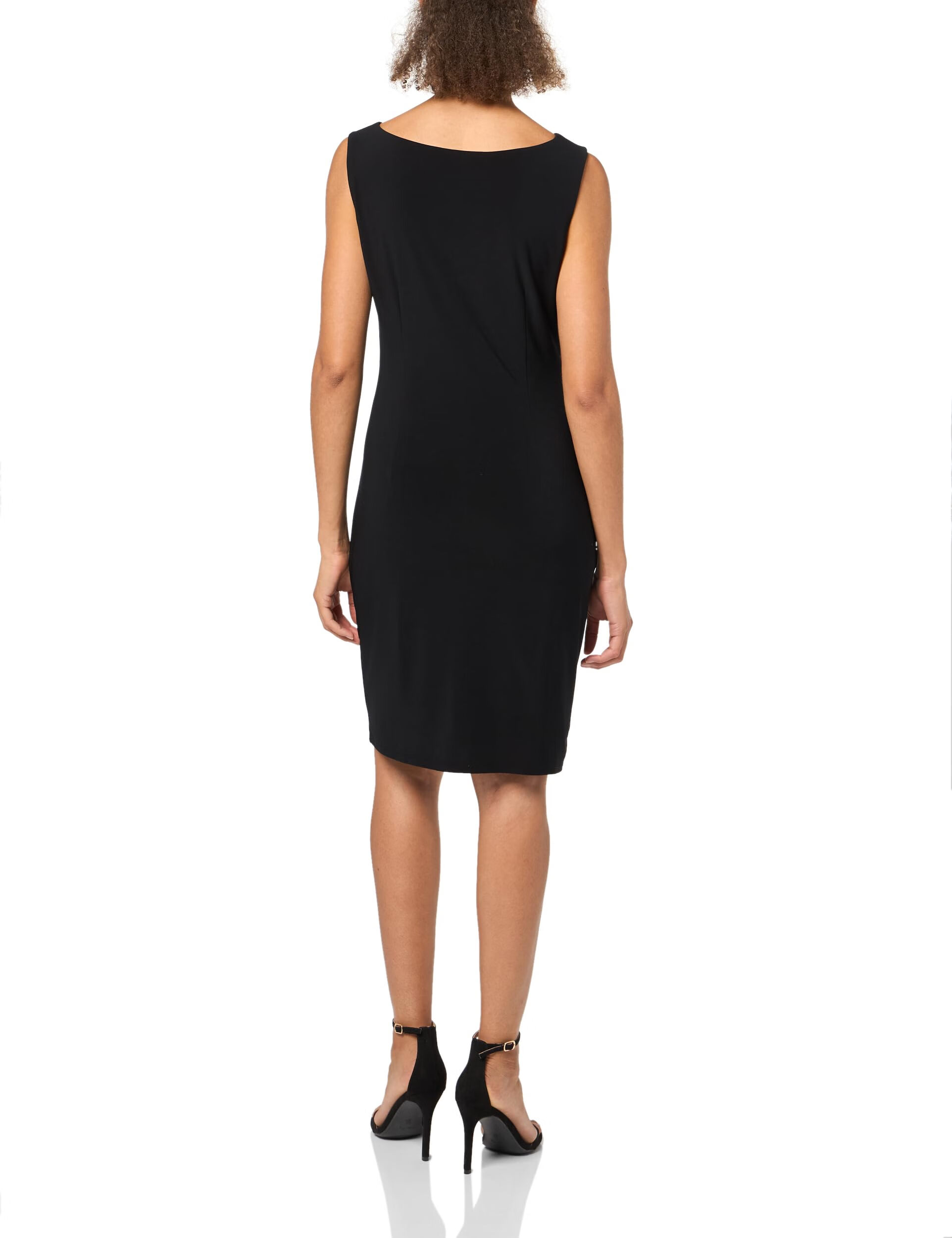 ANNE KLEIN Women's Metallic Pleated Dress Knee-length Collarless Short Sleeve Business Casual Gold/Black 14