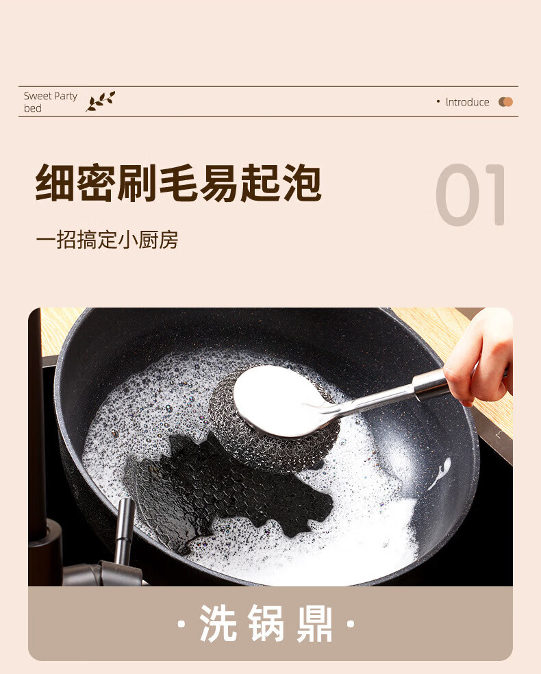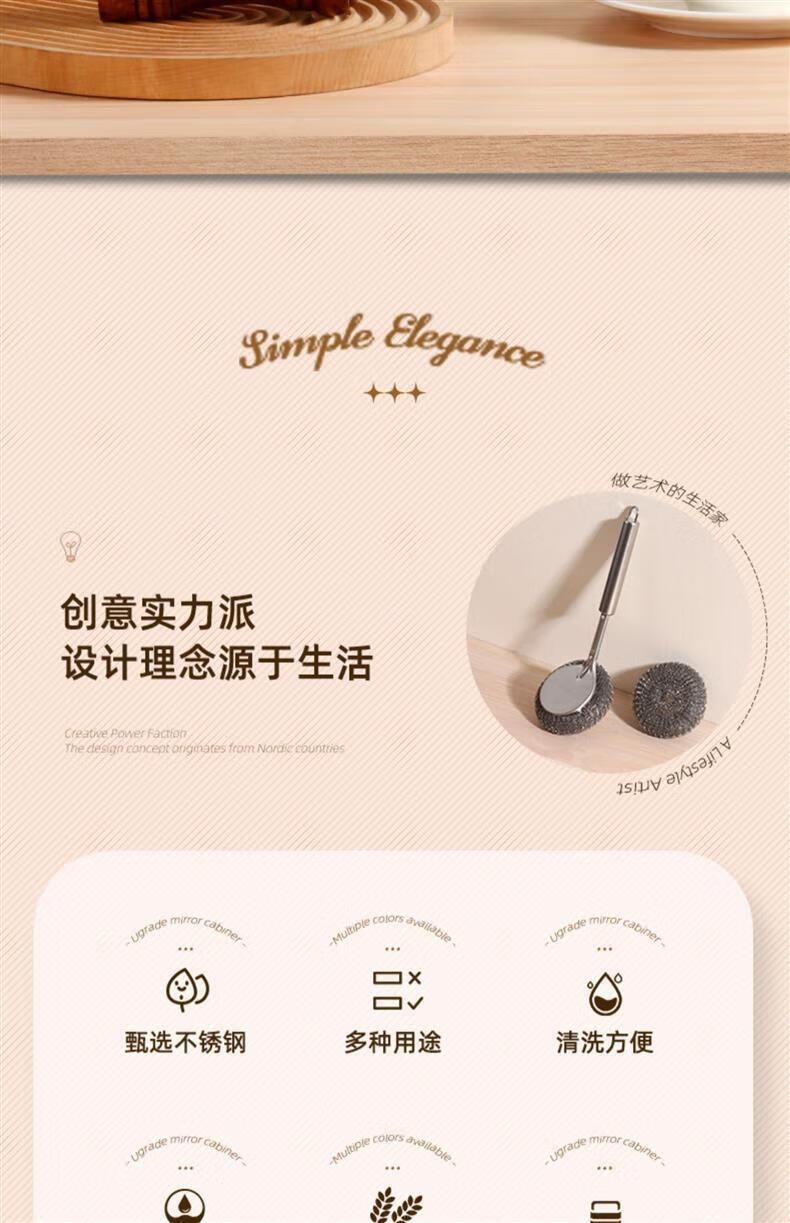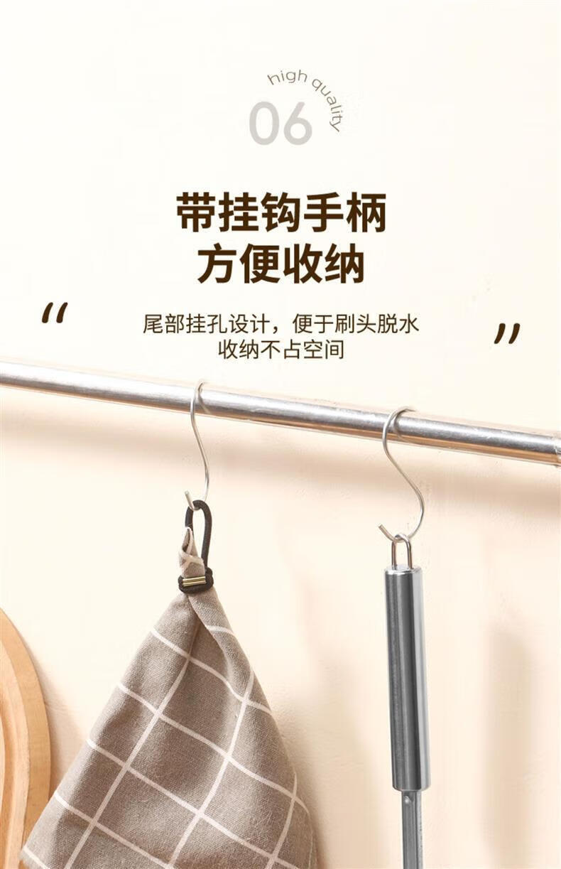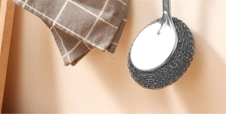 Stainless steel pot brush long handle pot washing brush household cleaning brush large steel wire ball with handle decontamination pot brush artifact stainless steel pot brush 1 pack + 1 spare brush head
