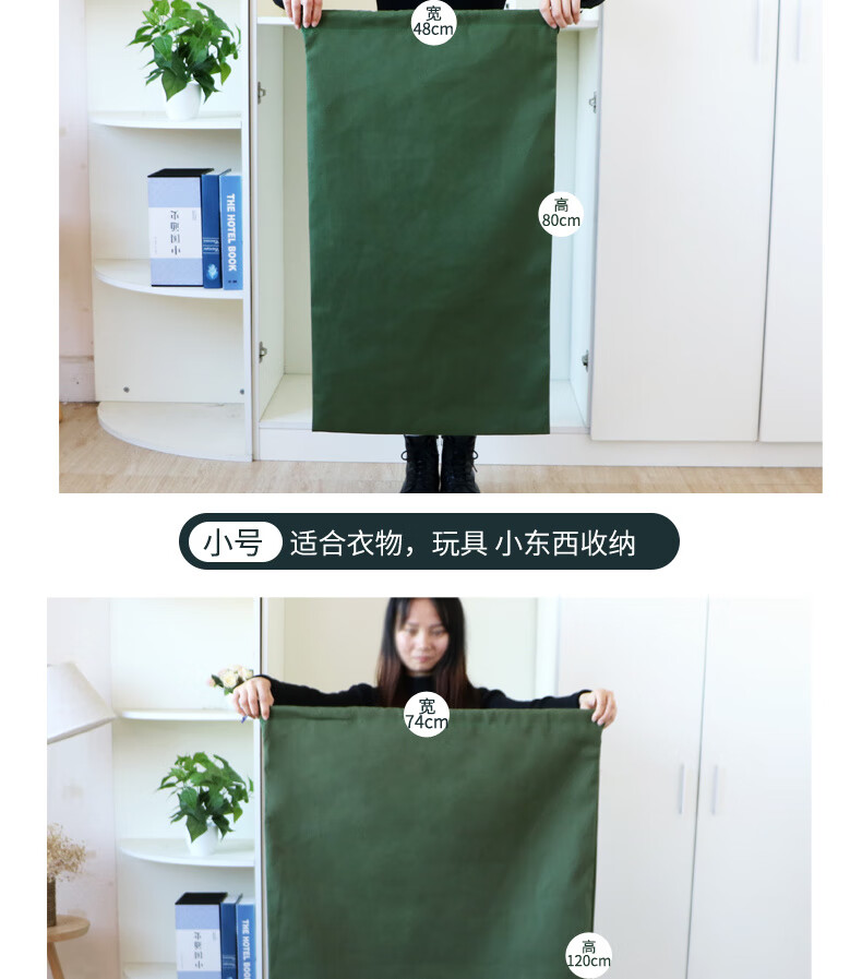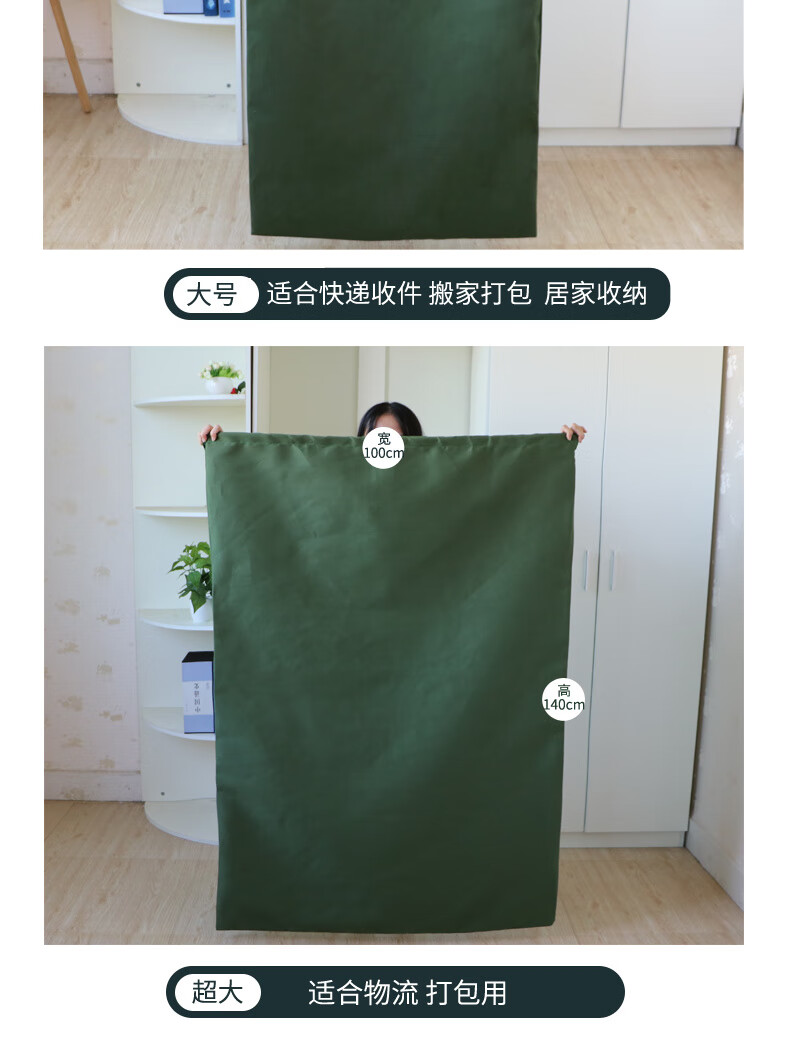 Military green wear-resistant waterproof storage bag Oxford cloth clothing quilt dust bag drawstring storage bag moving packing bag military green large size 120*74cm