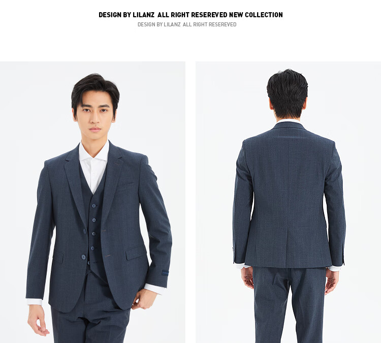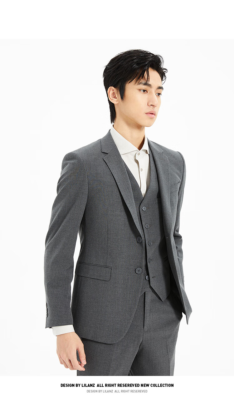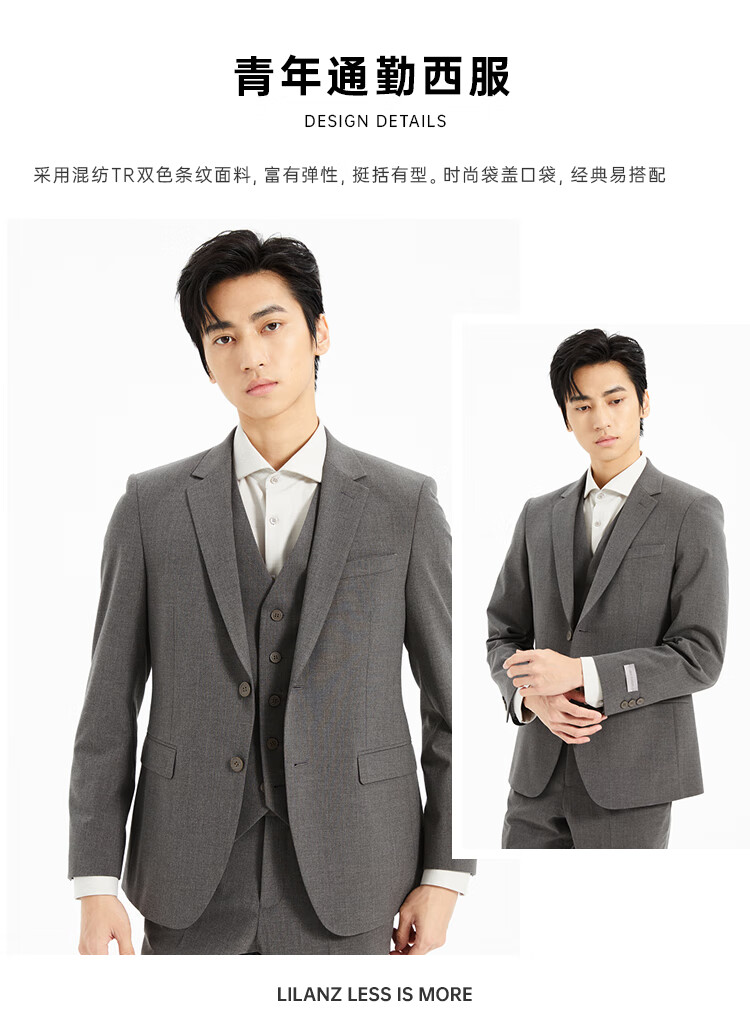 Lilang Youth Business Men's Wear Shopping Mall Suit Men's Two-Color Striped Formal Three-piece Suit Q5CXF01 Medium Gray 175A