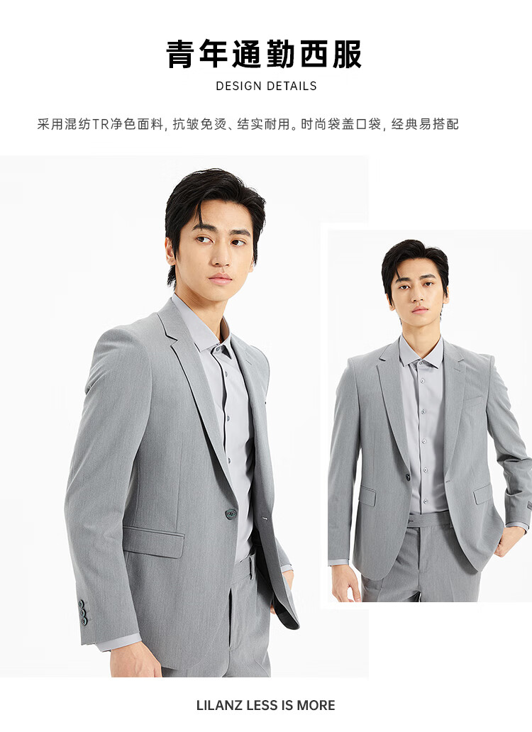 Lilang Youth Business Men's Wear Shopping Mall Same Style Suit Men's TR Blended Formal Two-piece Set Q5CXF06 Medium Gray 165A