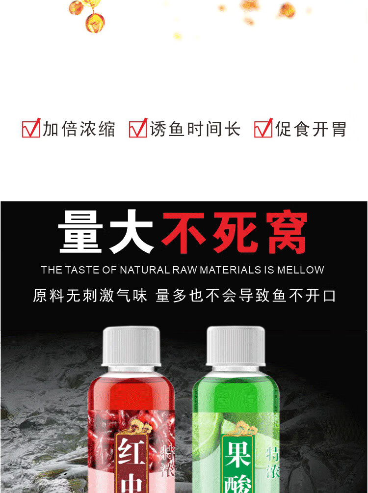 High-concentration fruit acid small medicine red worm liquid wild fishing tilapia silver carp and bighead carp bait additive concentrated black pit opening fresh fruit acid 60 ml strong flavor 1 bottle