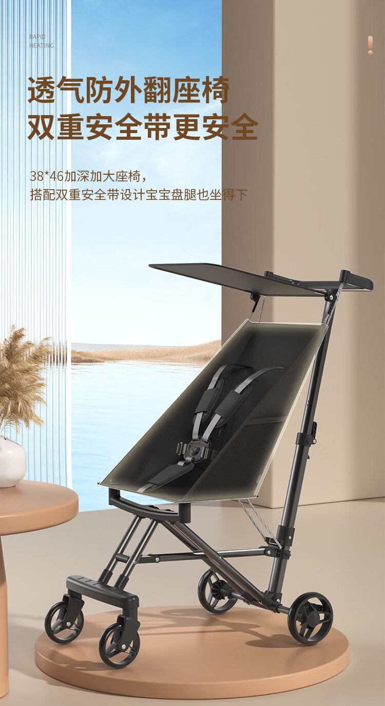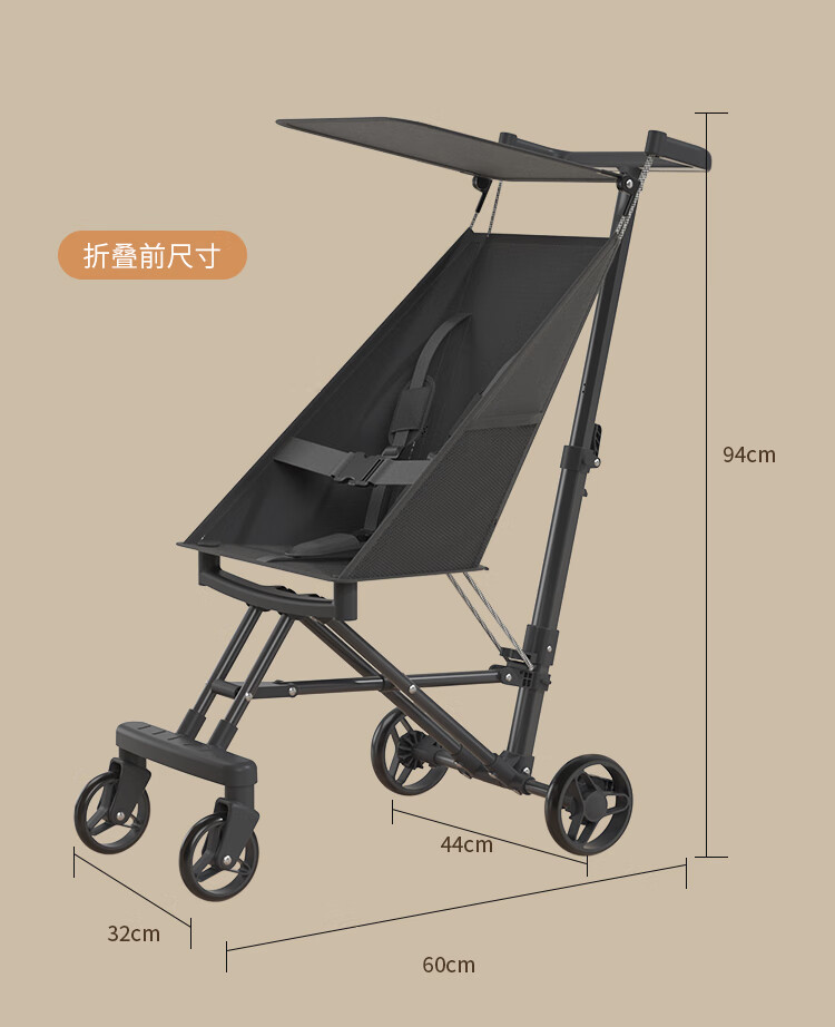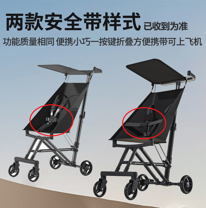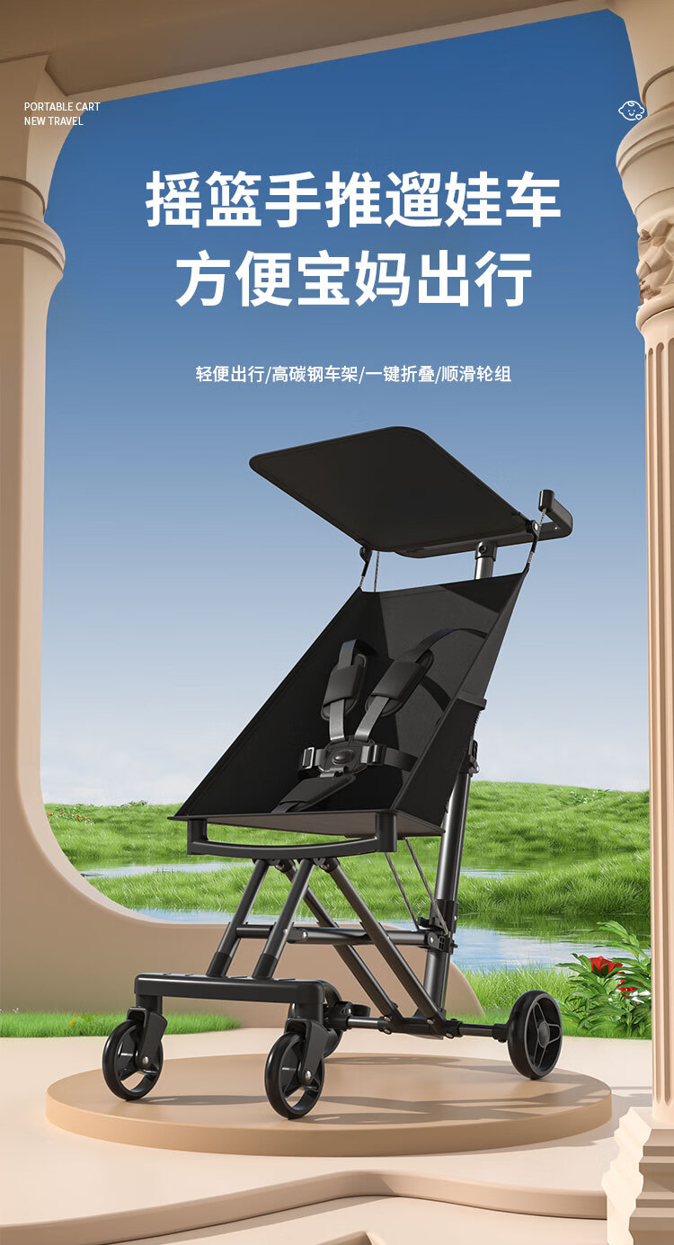 JOT TMM baby stroller, lightweight pocket stroller, foldable baby stroller, children's stroller, can board airplanes and trains, Star Black + Sunshade + Five-point Safety Belt
