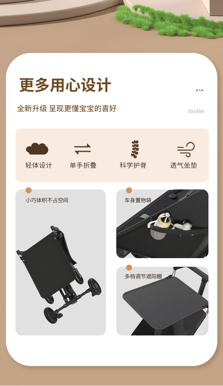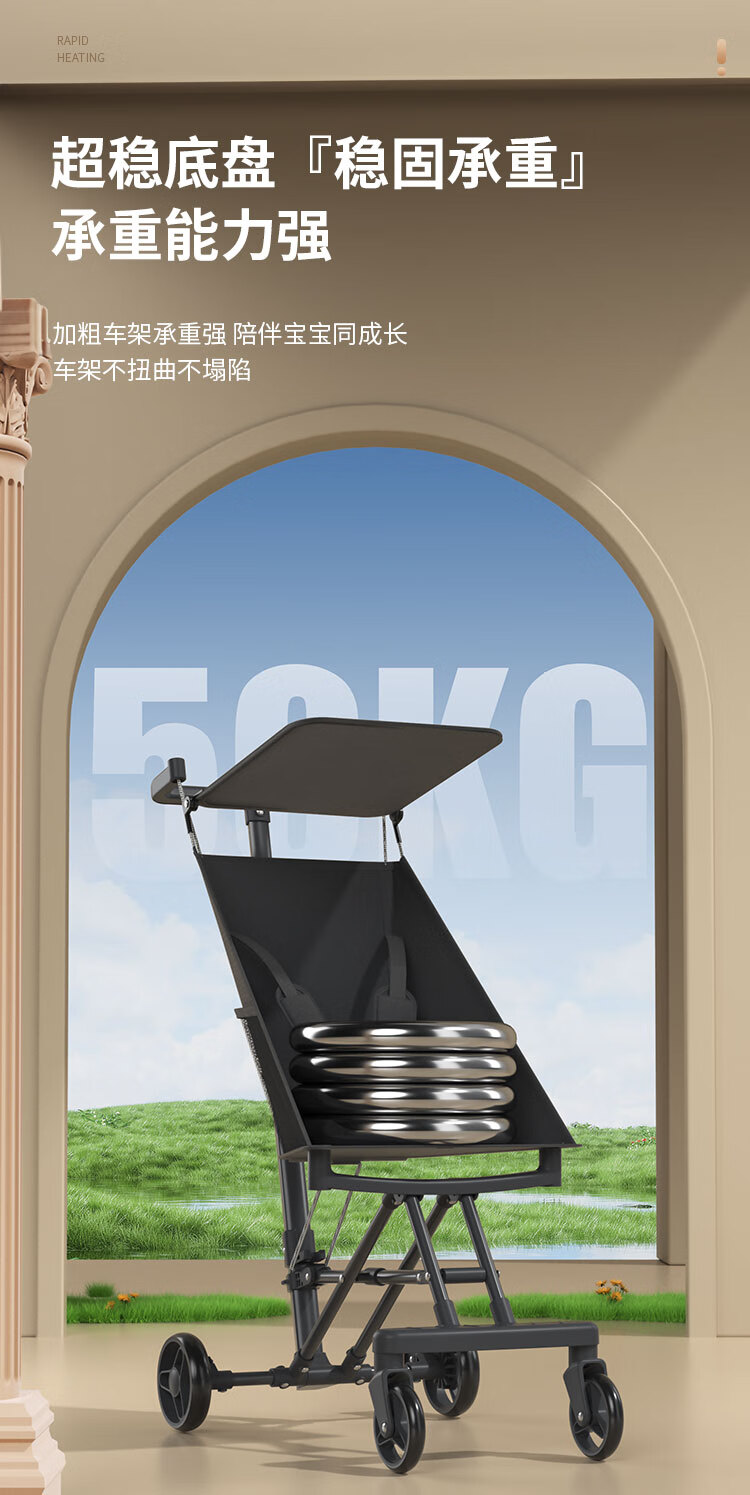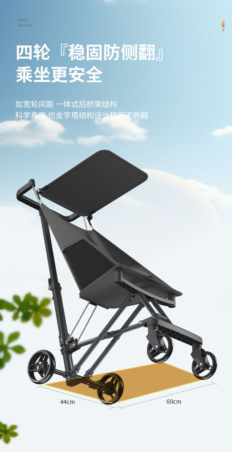 JOT TMM baby stroller, lightweight pocket stroller, foldable baby stroller, children's stroller, can board airplanes and trains, Star Black + Sunshade + Five-point Safety Belt