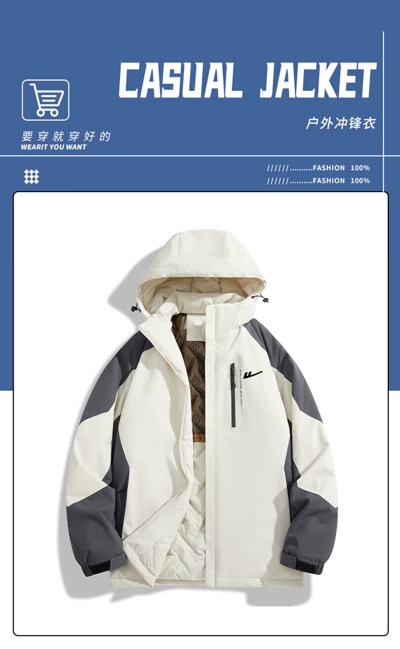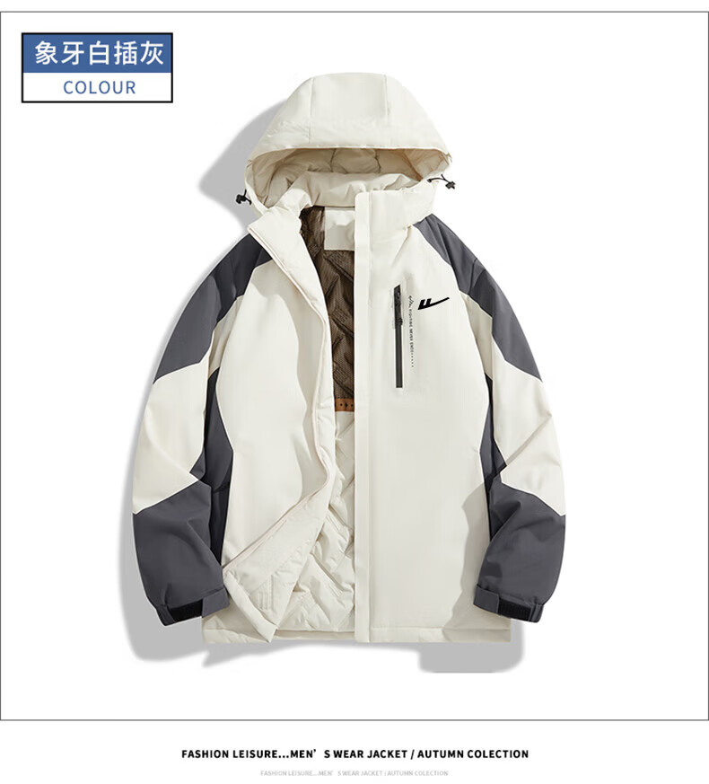 Pull-back cotton-padded jacket for men, men's winter bread coat, long-sleeved warm jacket, windproof thickened jacket, cotton-padded jacket top LG-HL-B1-58-8900 suspenders ivory white with black XL (recommended 130-145 Jin Jin equals 0.5 kg)