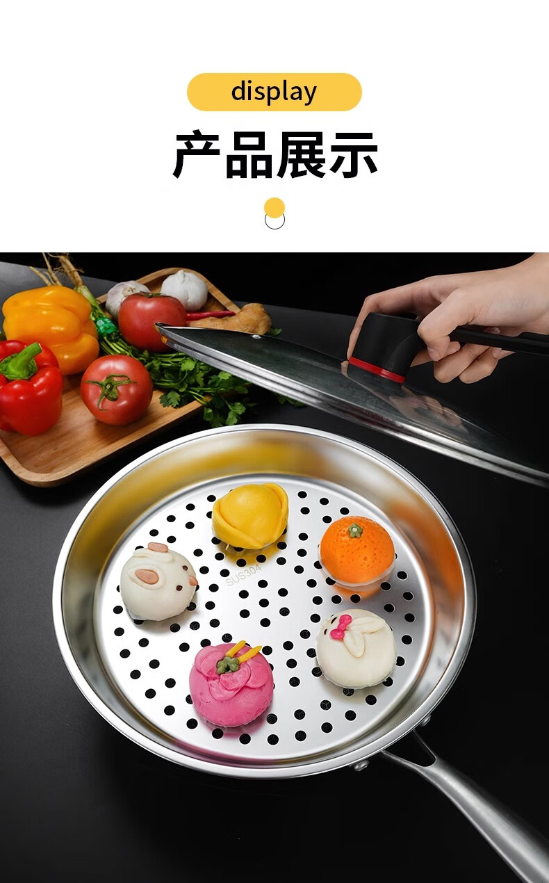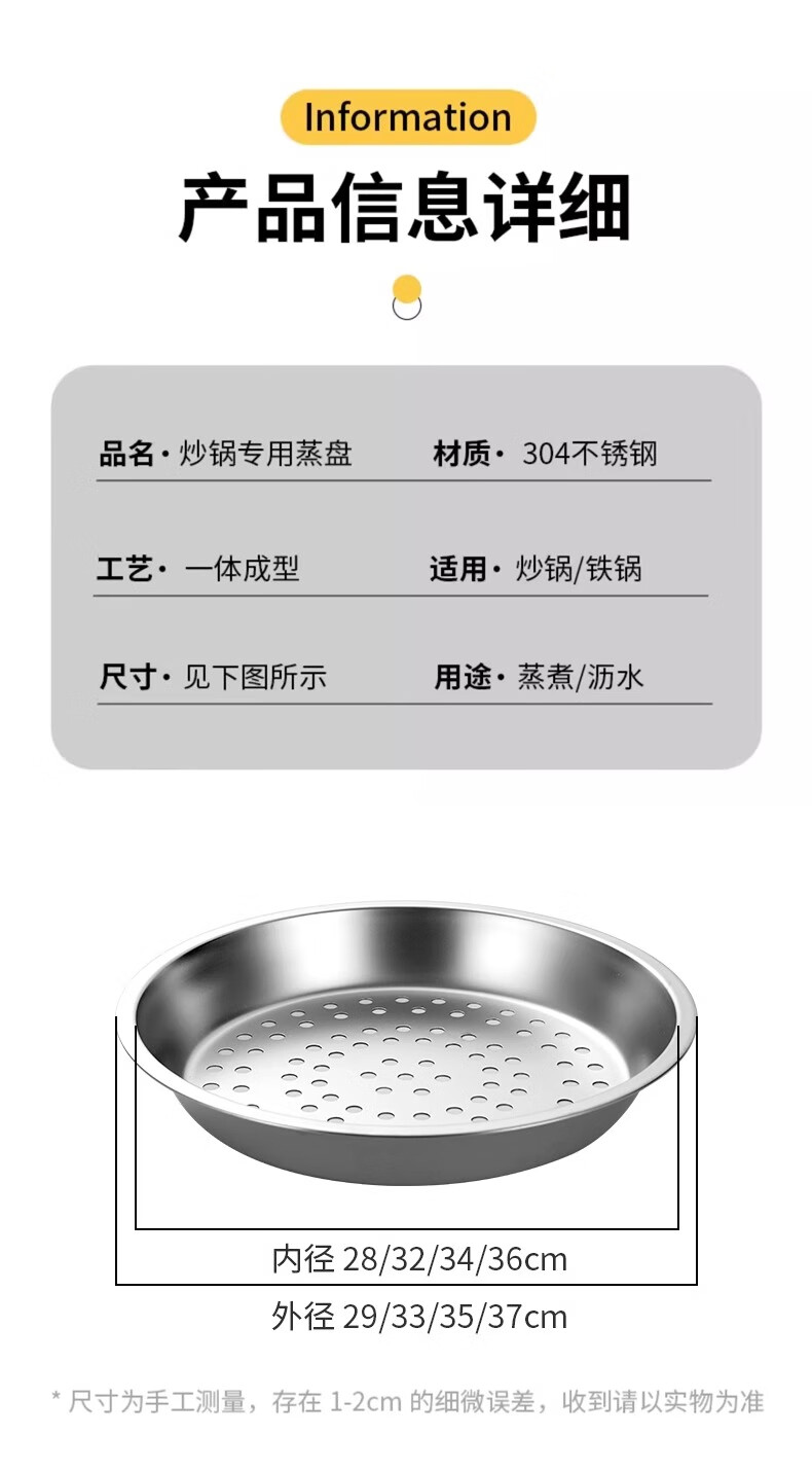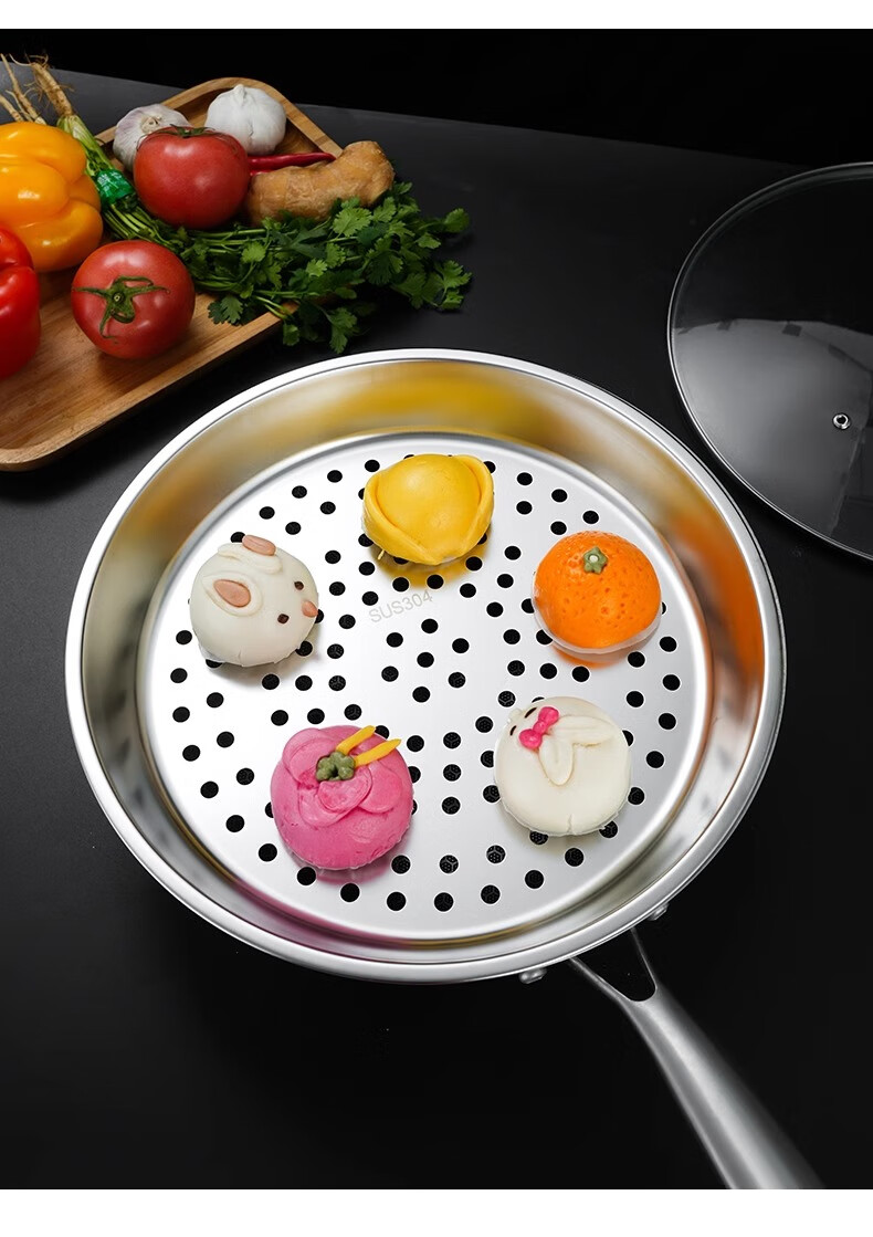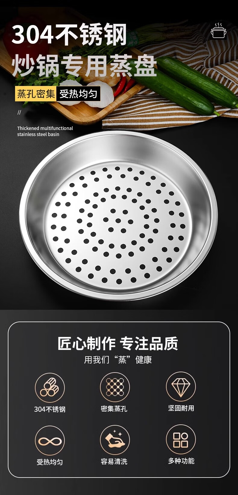 Special steaming tray for Shouli wok, 304 stainless steel, thickened, high temperature resistant, easy to clean, densely packed steaming holes, multifunctional water-proof steaming rack, upgraded 28cm steaming tray, 304 stainless steel, thickened and durable/heightened plate rim