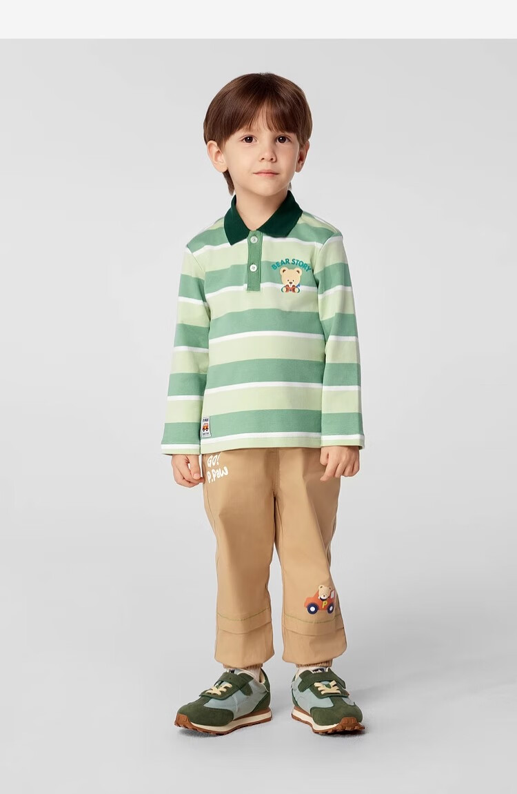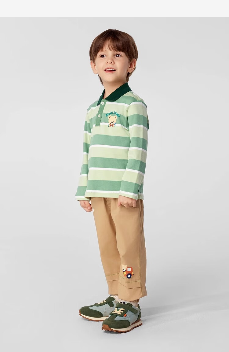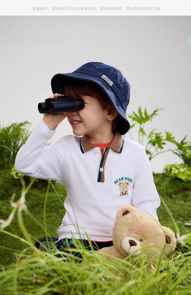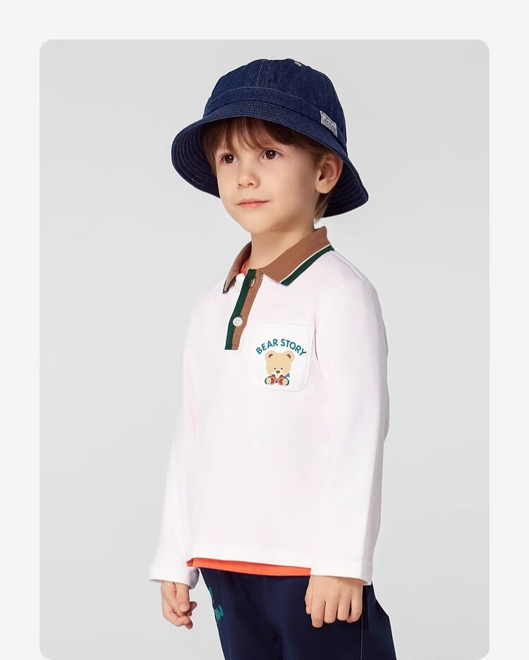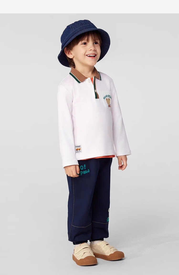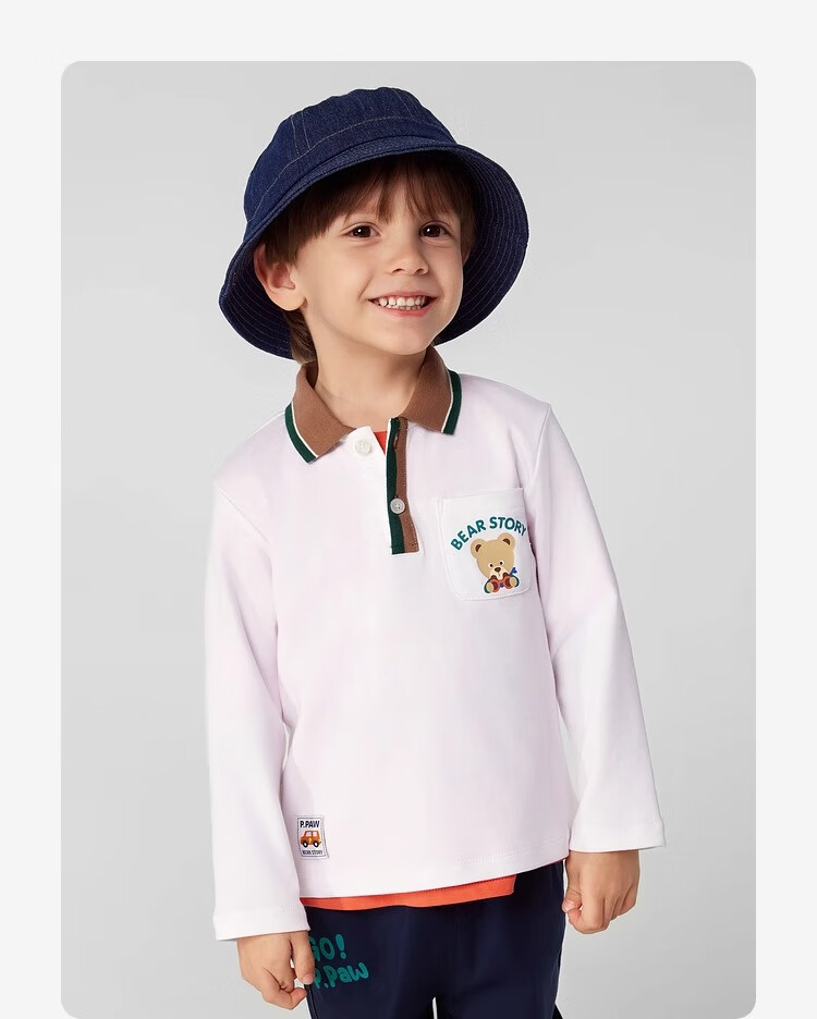 PawinPaw Bear Baby Cotton Cartoon Bear Children's Clothing 25th Spring and Summer New Boy's POLO Collar Long Sleeve T-shirt Ivory Ivory/39 100 cm