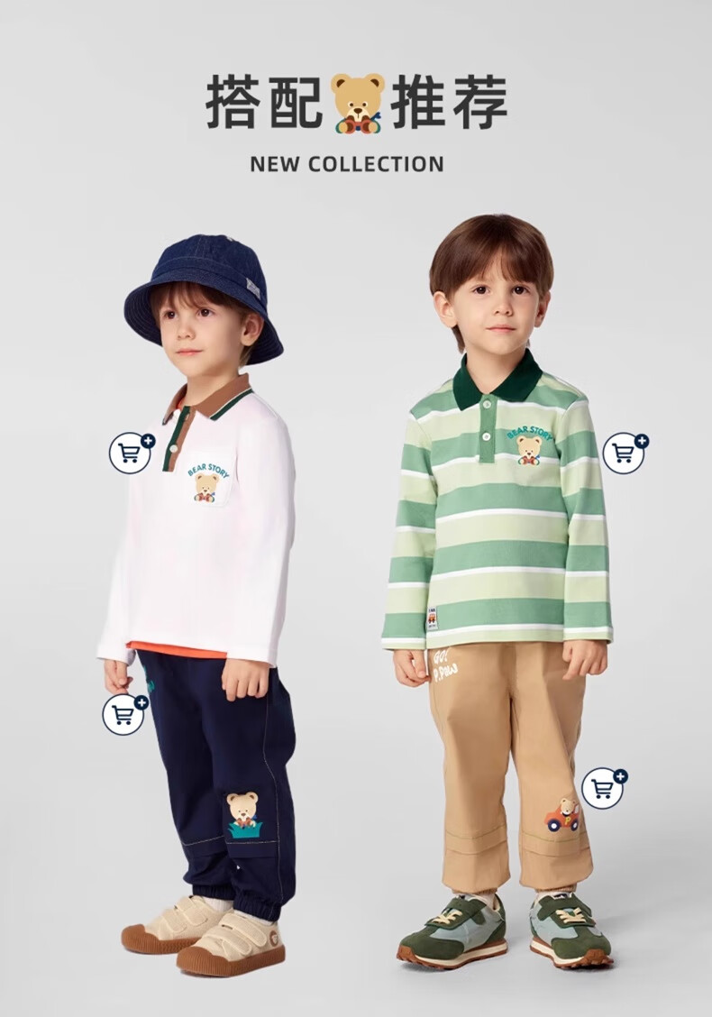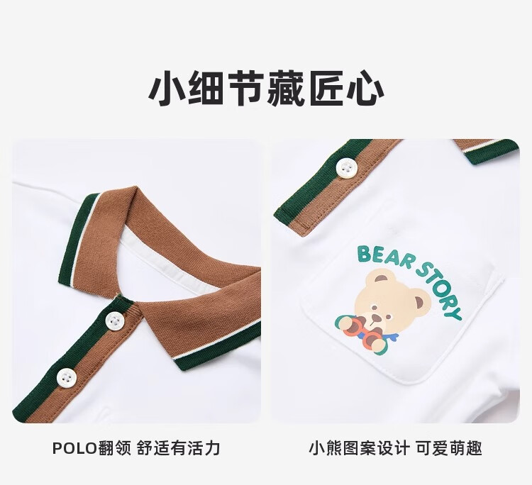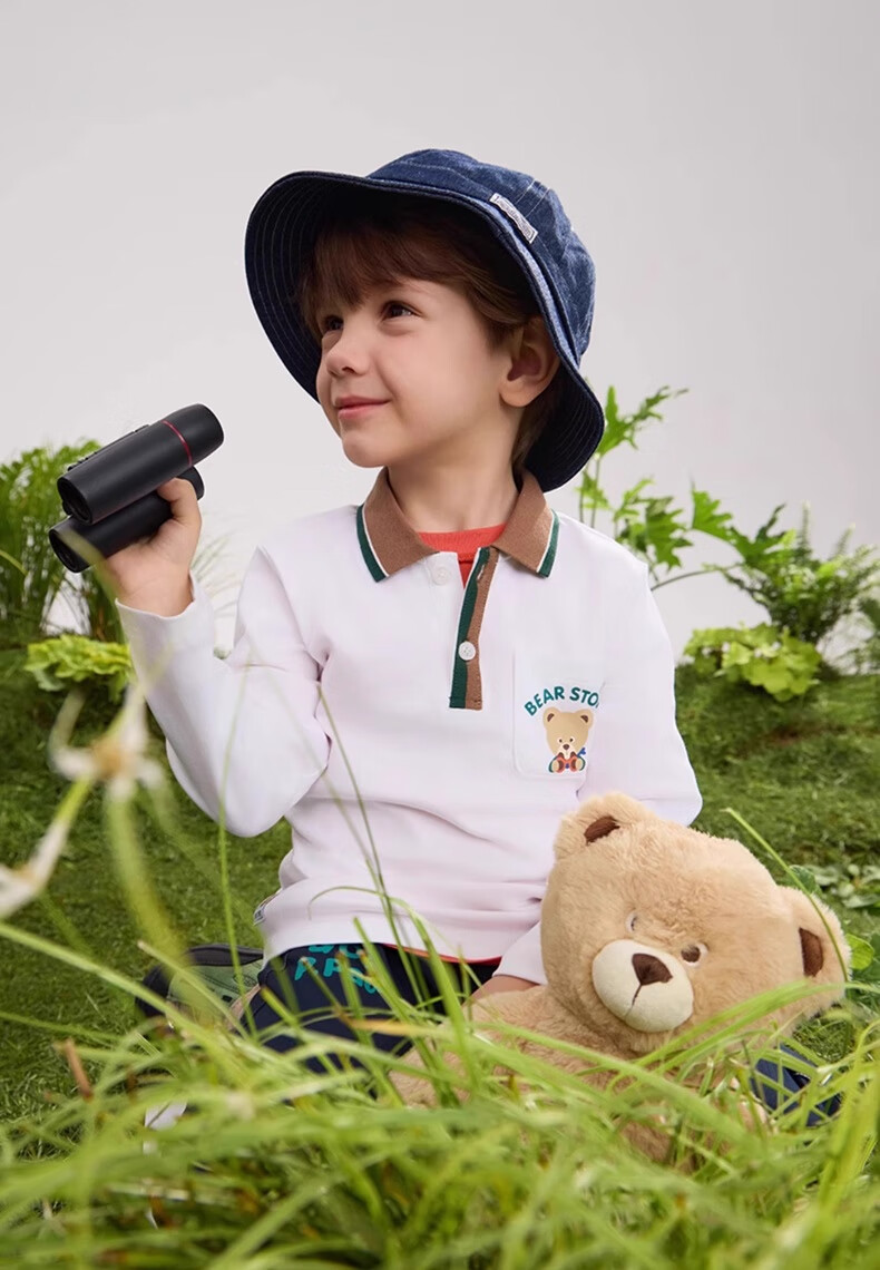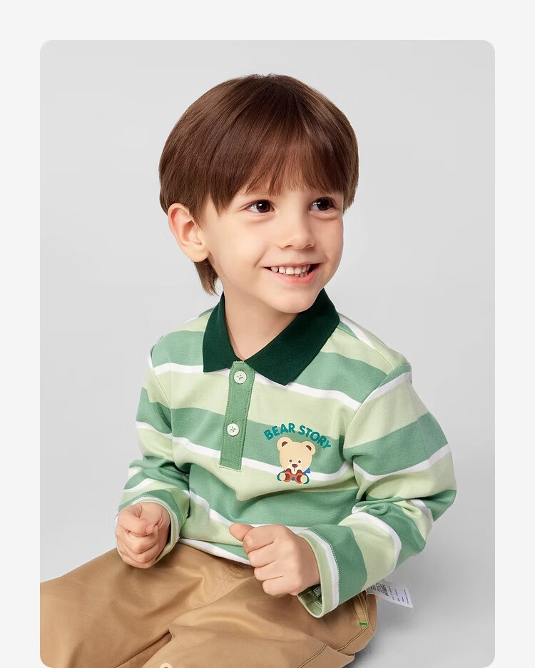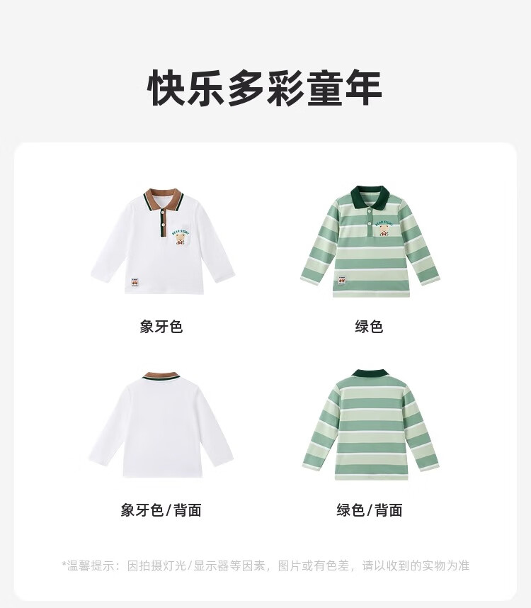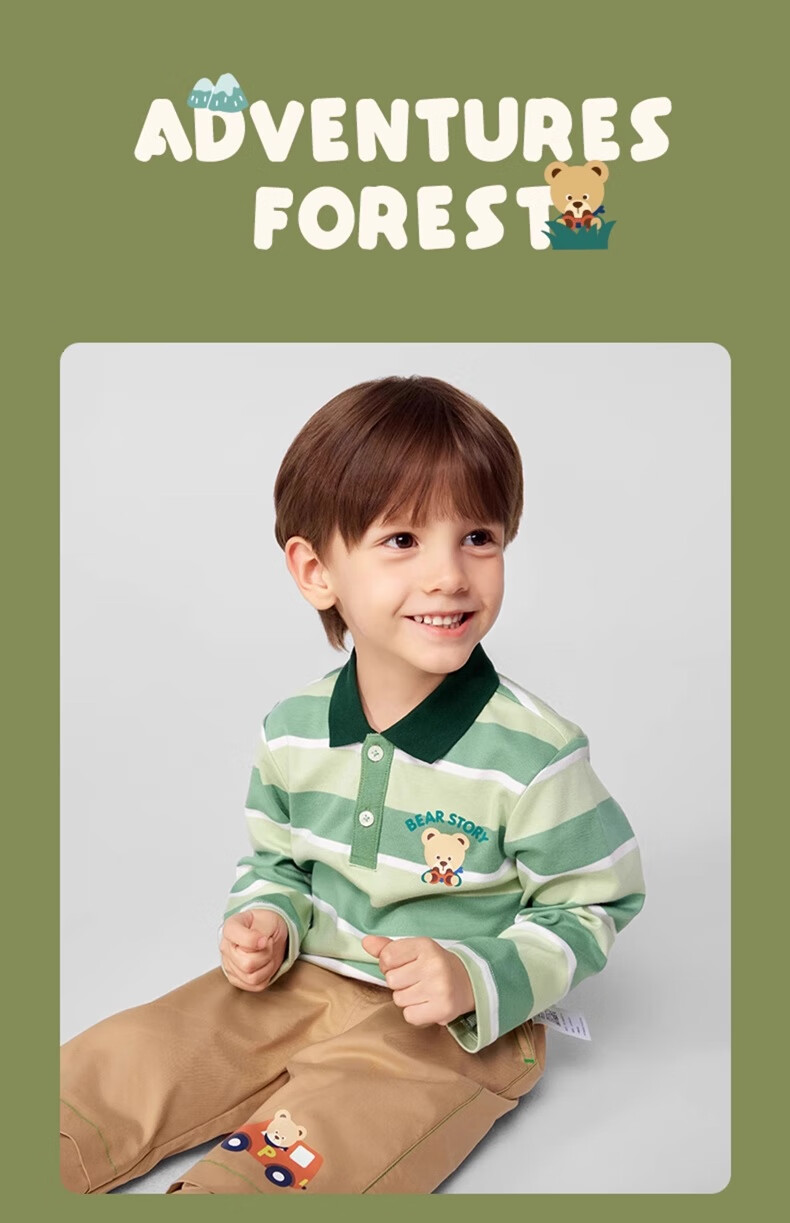 PawinPaw Bear Baby Cotton Cartoon Bear Children's Clothing 25th Spring and Summer New Boy's POLO Collar Long Sleeve T-shirt Ivory Ivory/39 100 cm