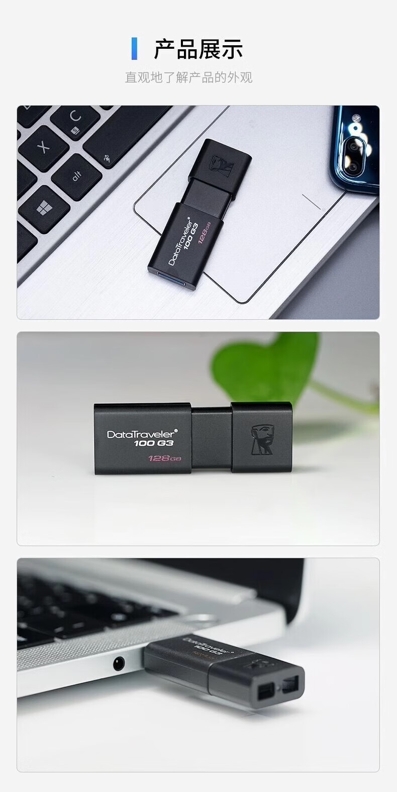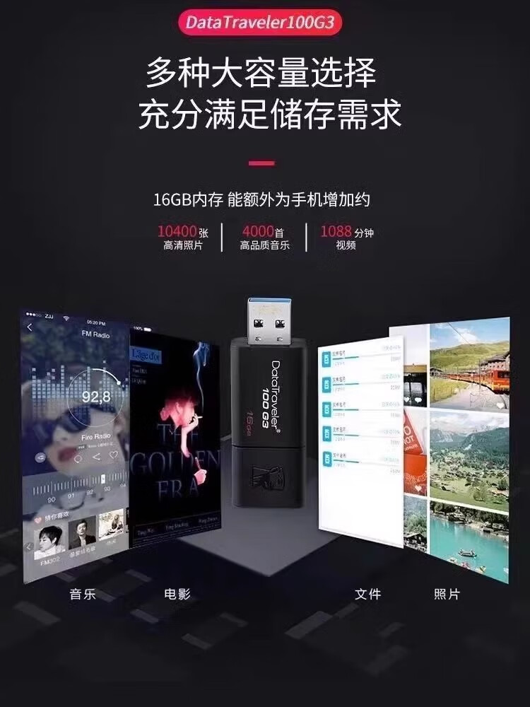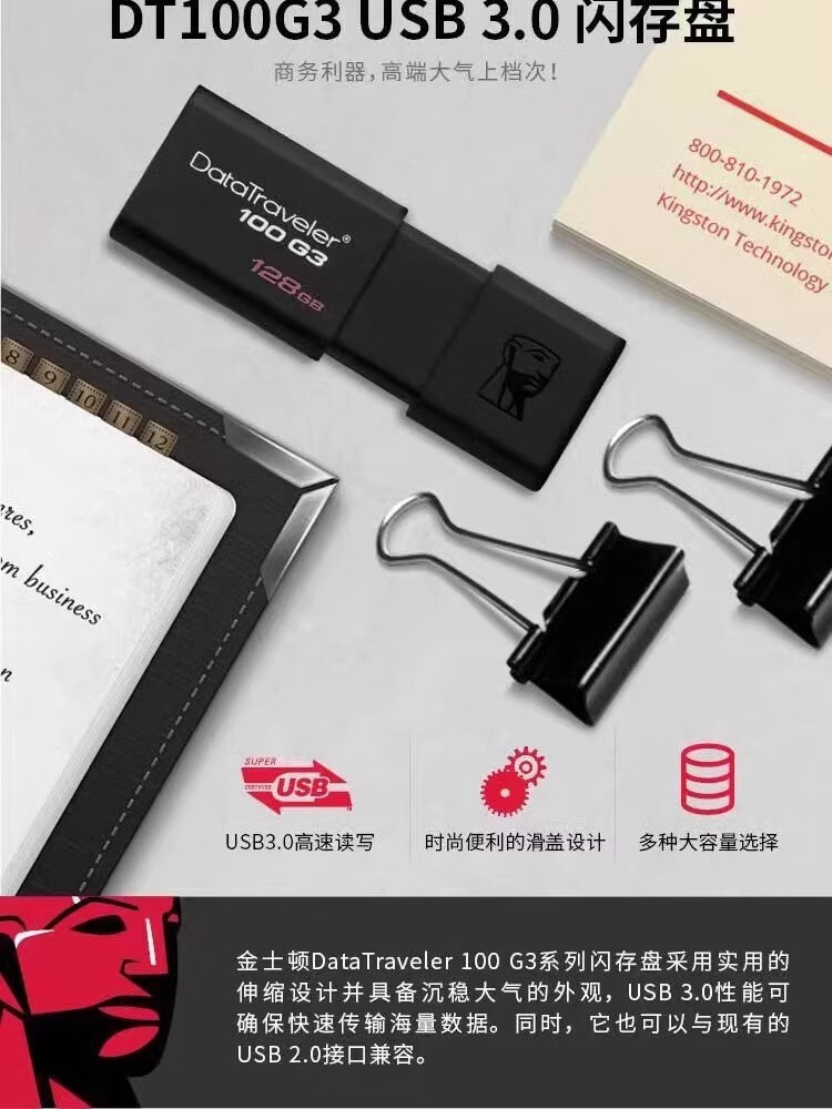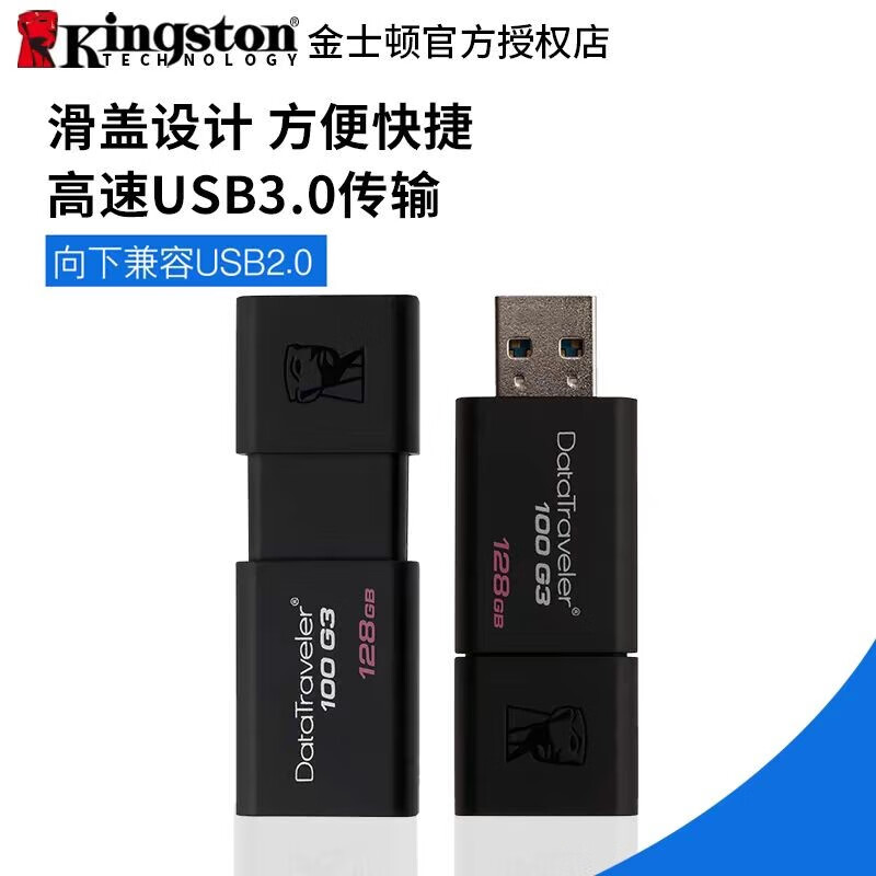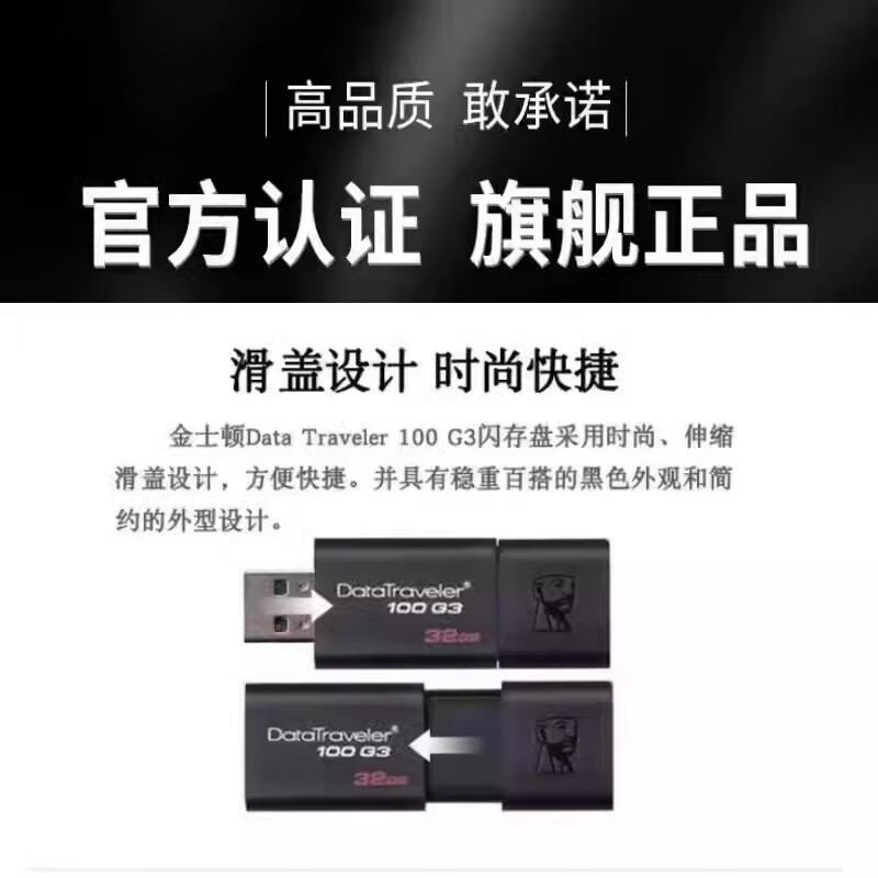 Original Kingston USB flash drive 16g32g64g128g high-speed 3.0 mobile phone and computer dual-purpose car wholesale dt100g3 black high-speed version + gift 128GB