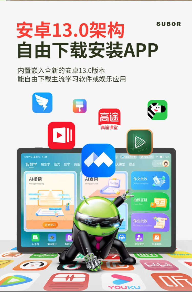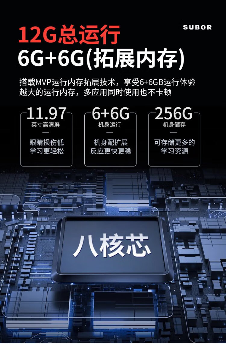 Xiaobawang M7pro learning machine 12-inch large screen eye protection 12G running 256G storage primary school junior high school and high school students dedicated synchronous textbook learning English general tutor flagship upgrade version M7pro 12-inch large screen + luxury gift 512G (including 256G memory card)