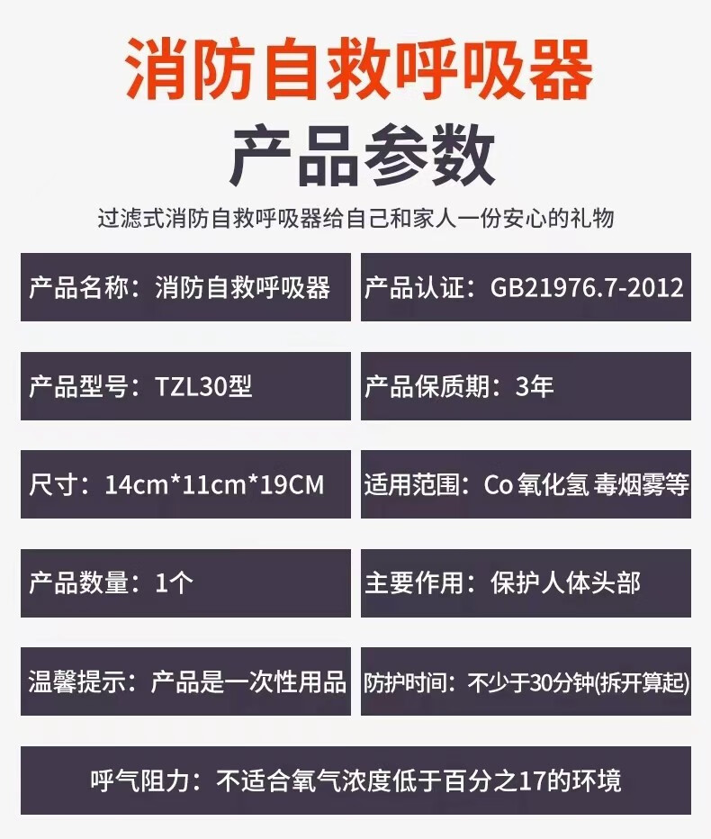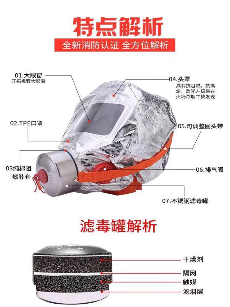 Chaoyiya new national standard fire mask hotel ktv3C certified TZL30 anti-virus and anti-smoke filter self-rescue respirator 3C national standard TZL30A escape mask new date