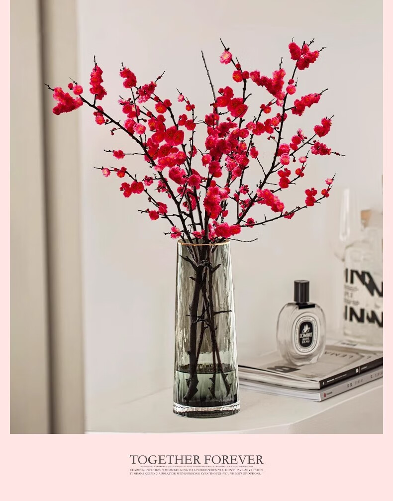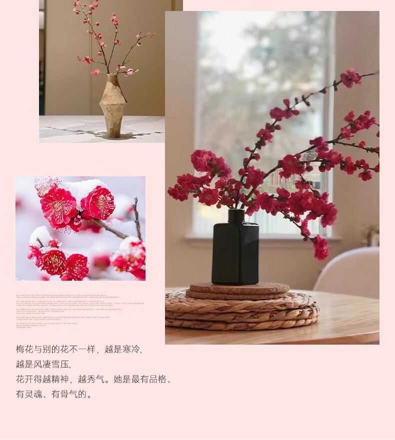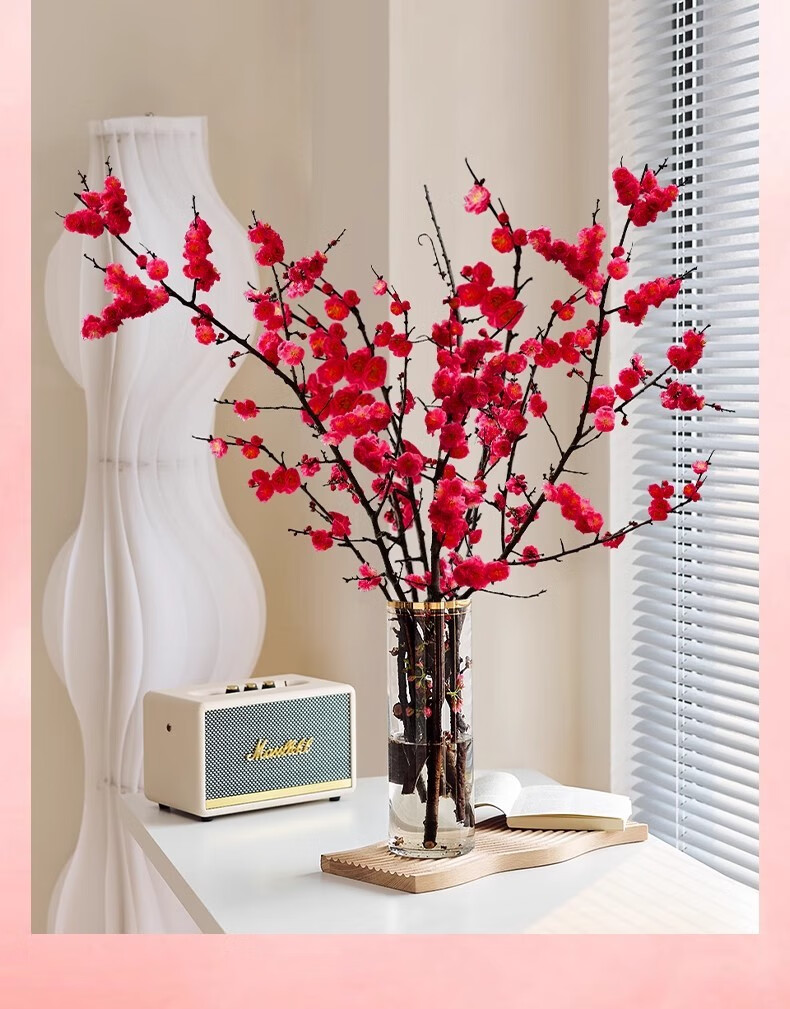 Hydroponic flowering, hydroponic fresh-cut red plum blossoms, indoor fragrant cold-resistant flowers, bloom when exposed to water, peach branches New Year's Eve flowers, fresh-cut red plum blossoms, long flowering period, with buds + #Buy 10 plus 10 (received 20) full bloom