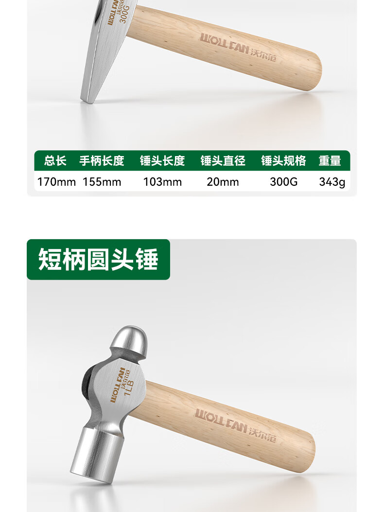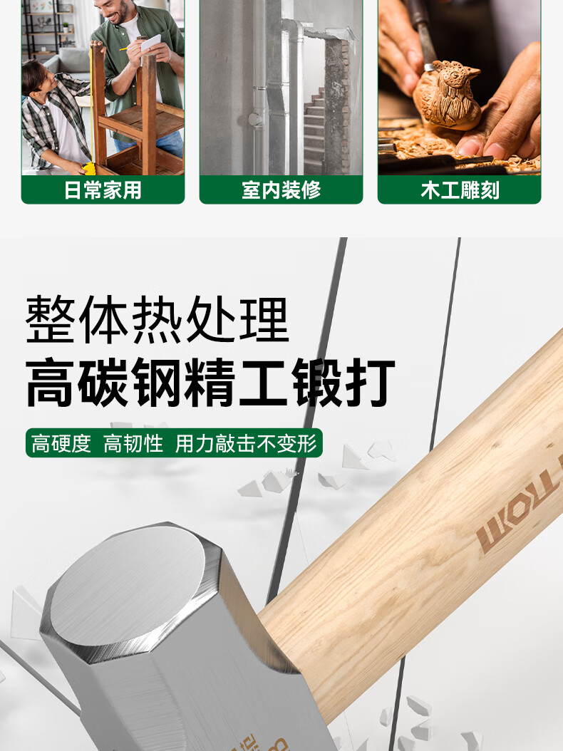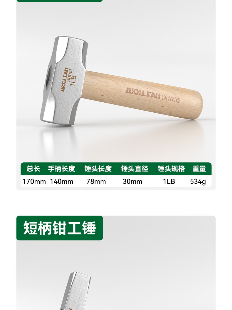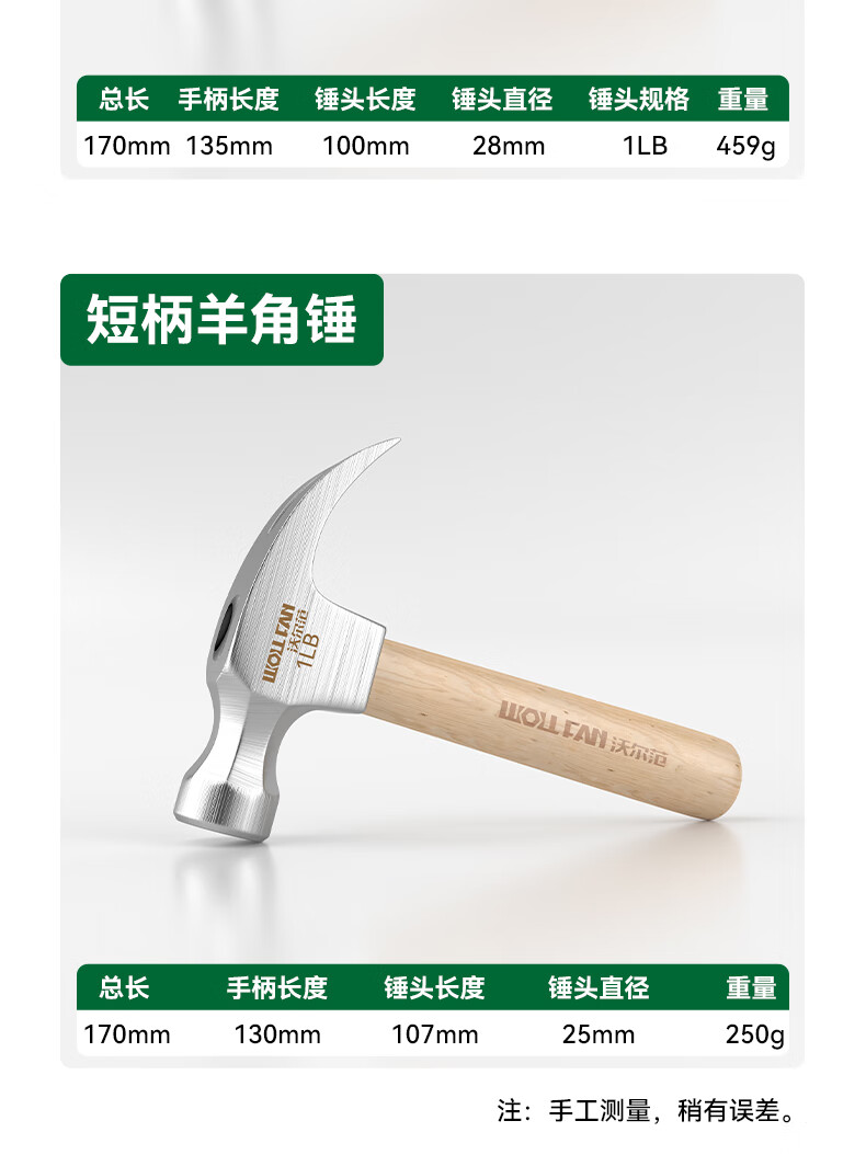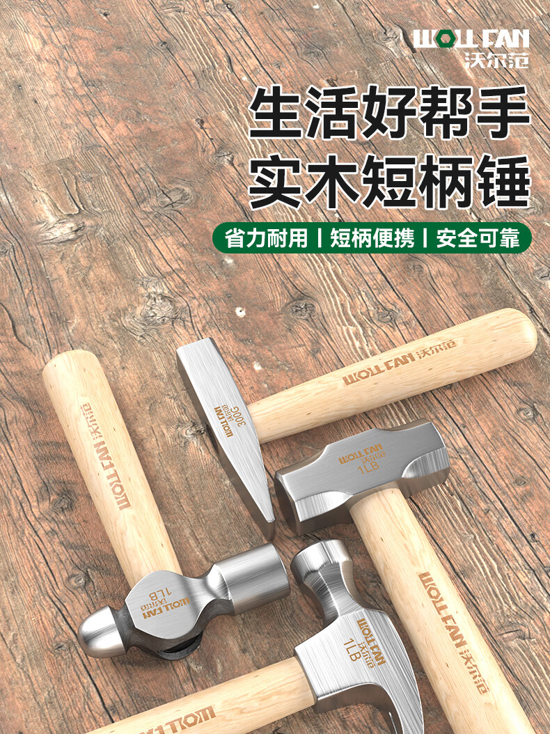 Wolfan claw hammer household multifunctional hammer wooden handle hammer woodworking hammer nail hammer short handle mini trumpet tool solid wood green wood short handle octagonal hammer
