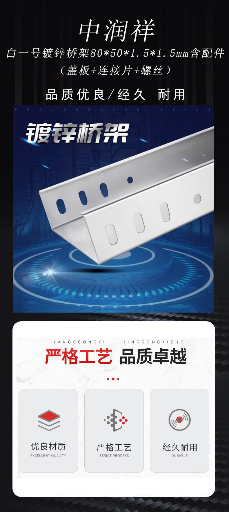 Zhongrunxiang White No. 1 galvanized bridge 80*50*1.5*1.5mm including accessories (cover plate + connecting piece + screws)