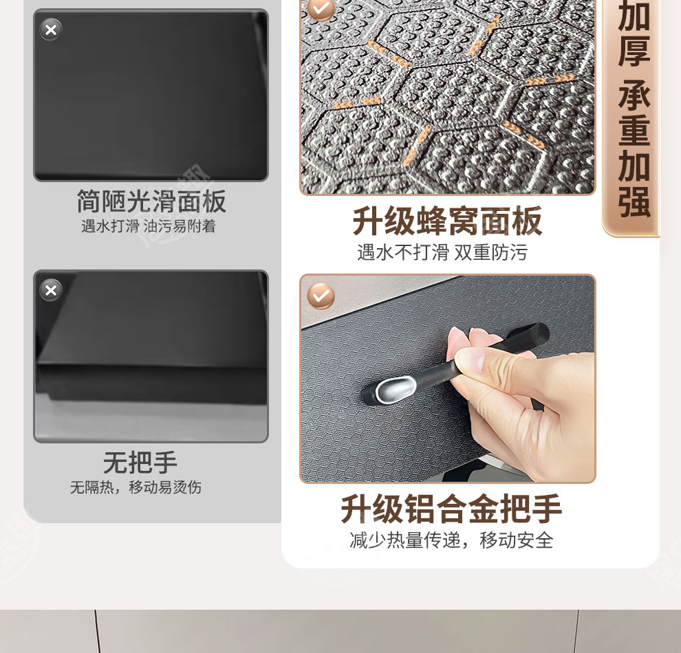 Home Fun Kitchen Storage Rack Honeycomb Gas Stove Cover Gas Stove Bench Rack Induction Stove Bracket Multifunctional Stove Cover Rack Gas Stove Cover Cover 35*48*7 (With Handle) Anti-Slip Honeycomb Panel