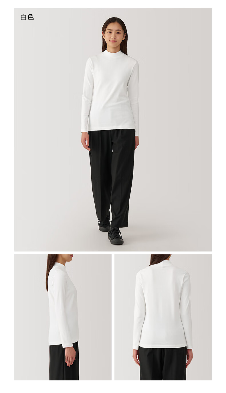 MUJI women's raised rib knit half turtleneck long-sleeved T-shirt base layer for winter BBD93C4A white S