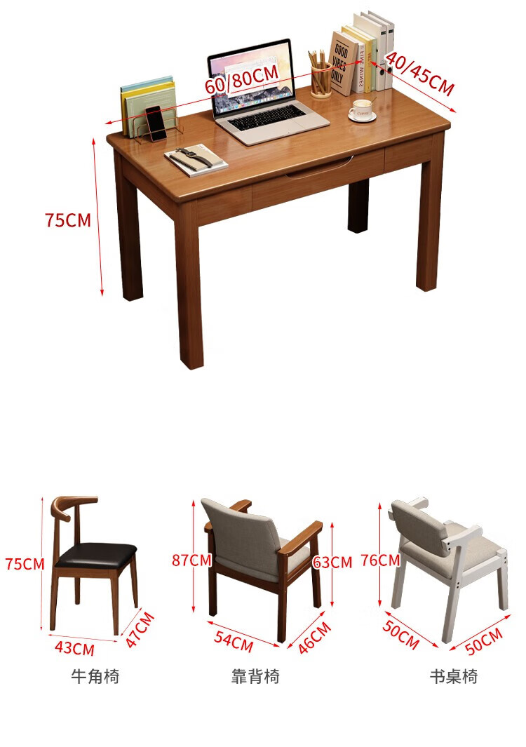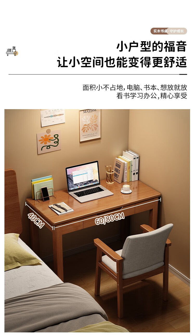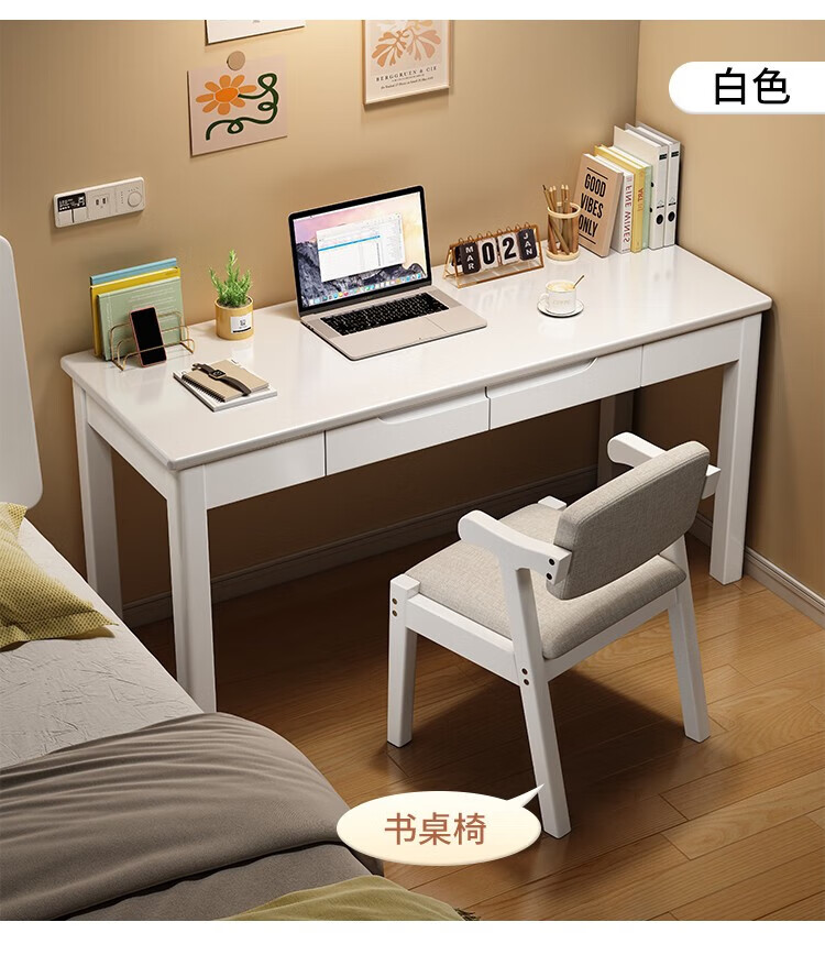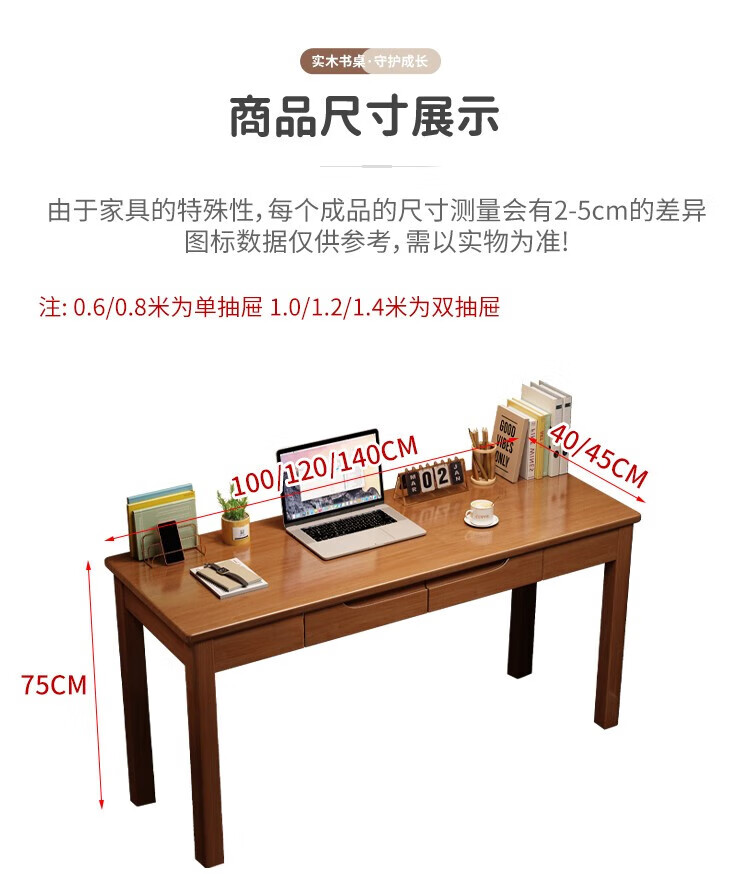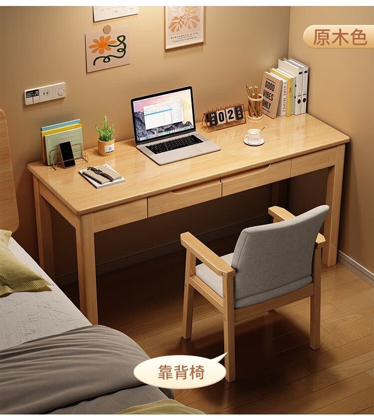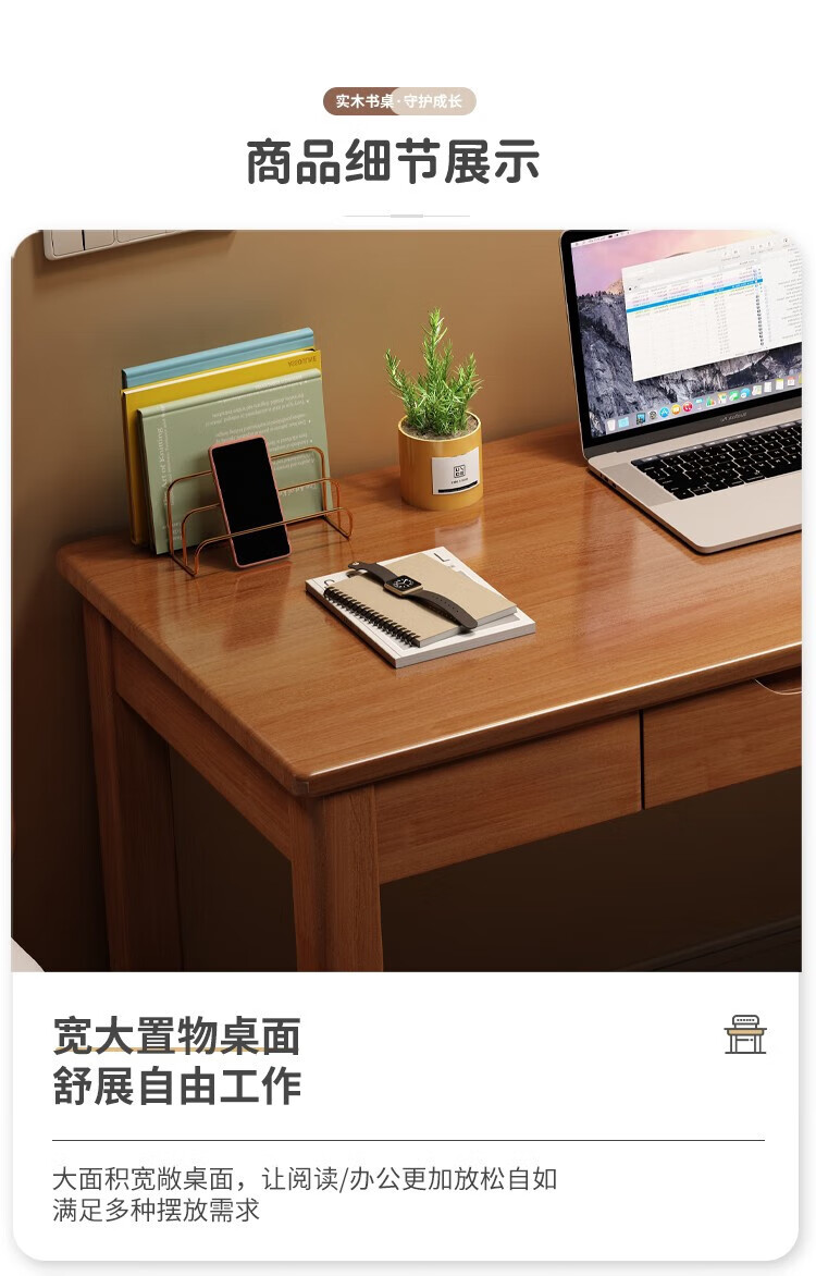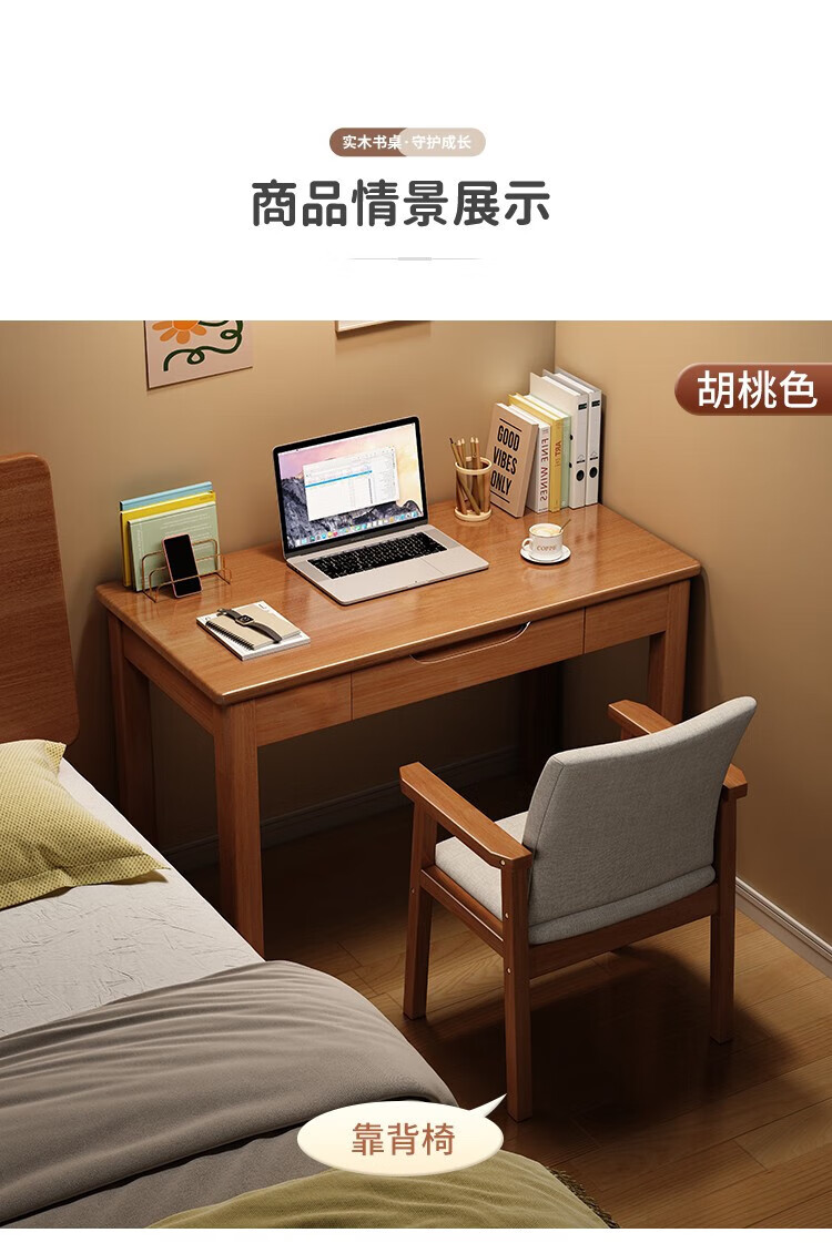 MUYESIYU SF express all solid wood desk simple home student writing desktop computer table bedroom study table walnut color desk + A1 chair 140*55*75cm double drawers