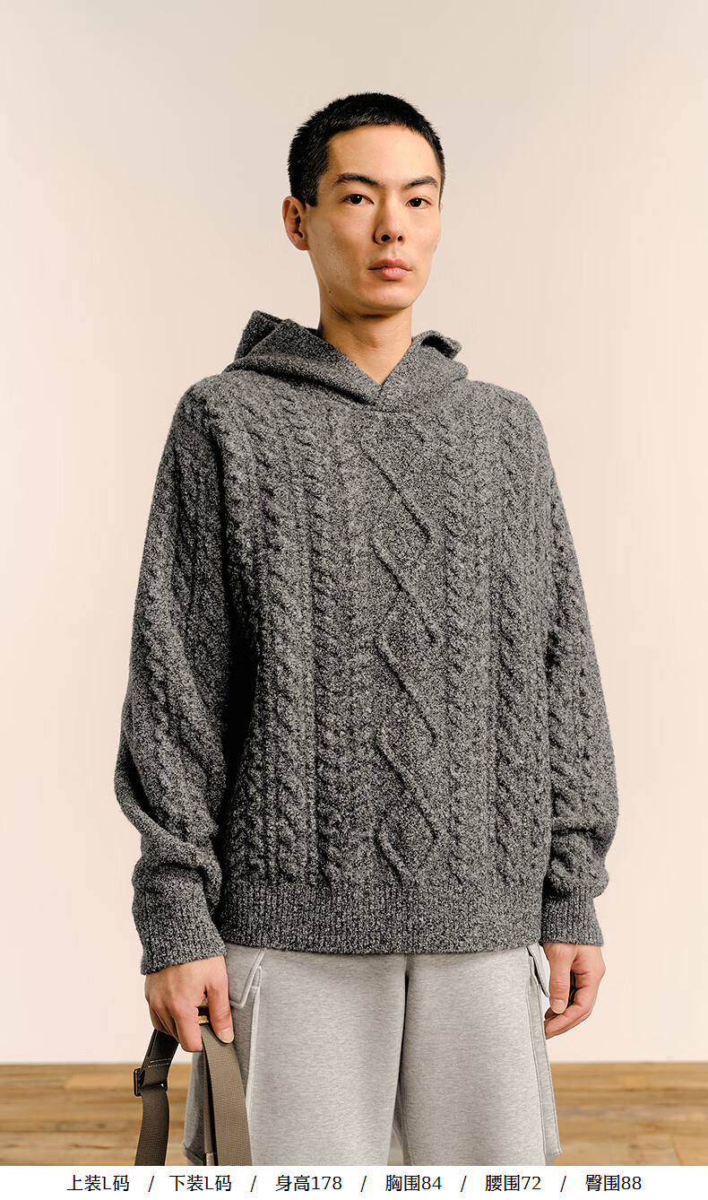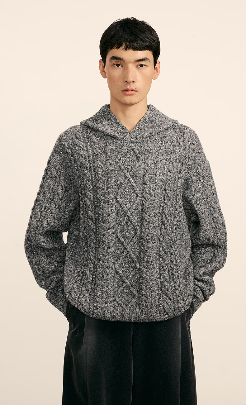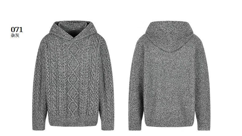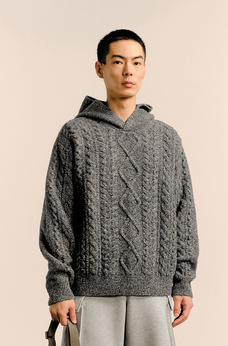 Sketch men's 2025 spring and summer new product environmentally friendly thick needle single-sided long-sleeved sweater hooded loose retro 9P1315050 071 gray S