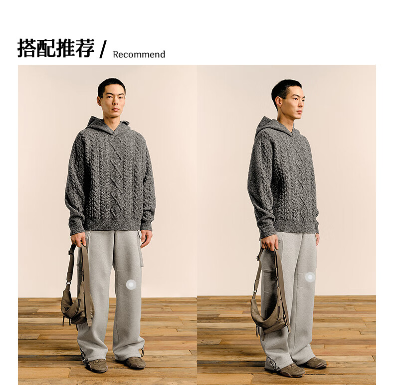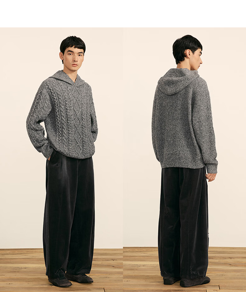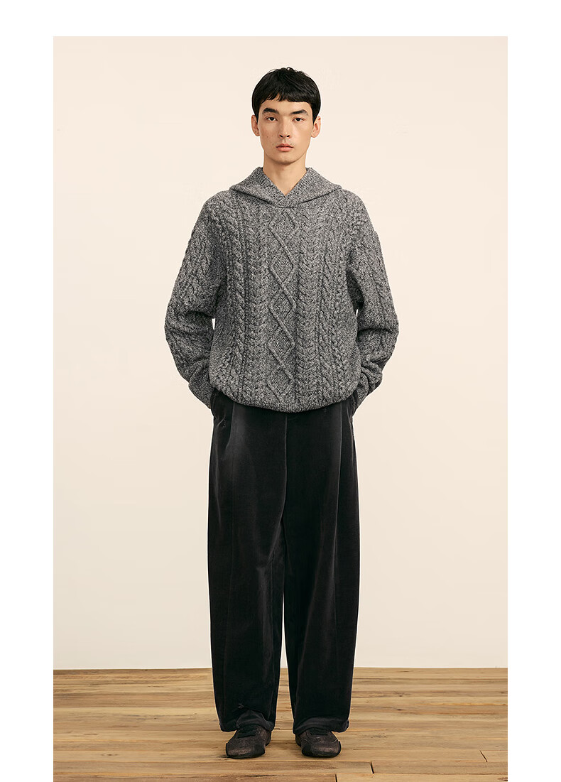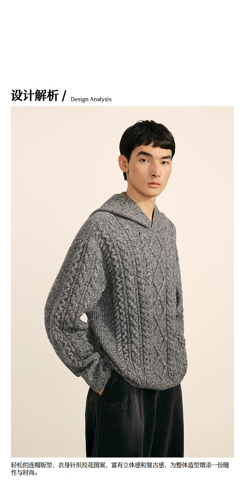 Sketch men's 2025 spring and summer new product environmentally friendly thick needle single-sided long-sleeved sweater hooded loose retro 9P1315050 071 gray S