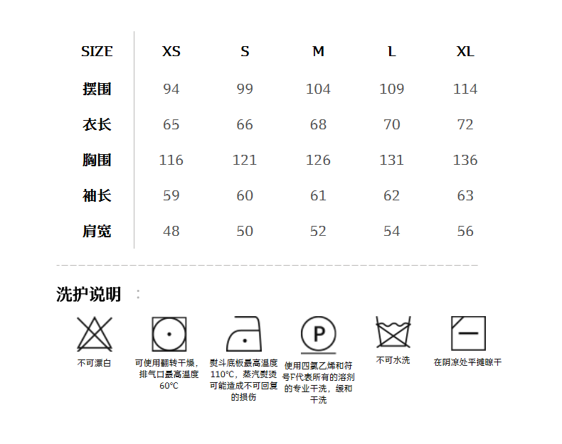 China (cm) 160-165/84-86 165-170 / 88-90 167-172 / 92-96 168-173 / 98-102 170-176 / 106-110