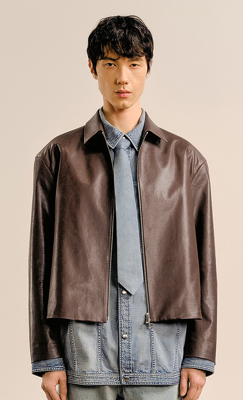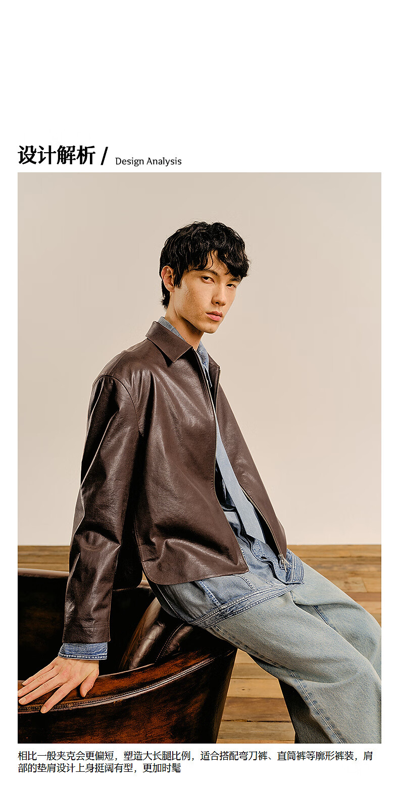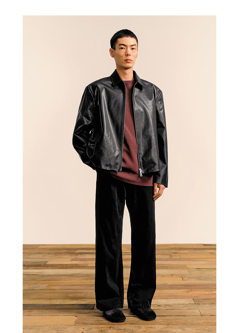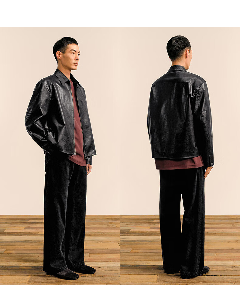 Sketch men's 2025 spring new arrival short eco-friendly imitation leather jacket leather coat long-sleeved avant-garde lapel 9P1A14910 001 black S