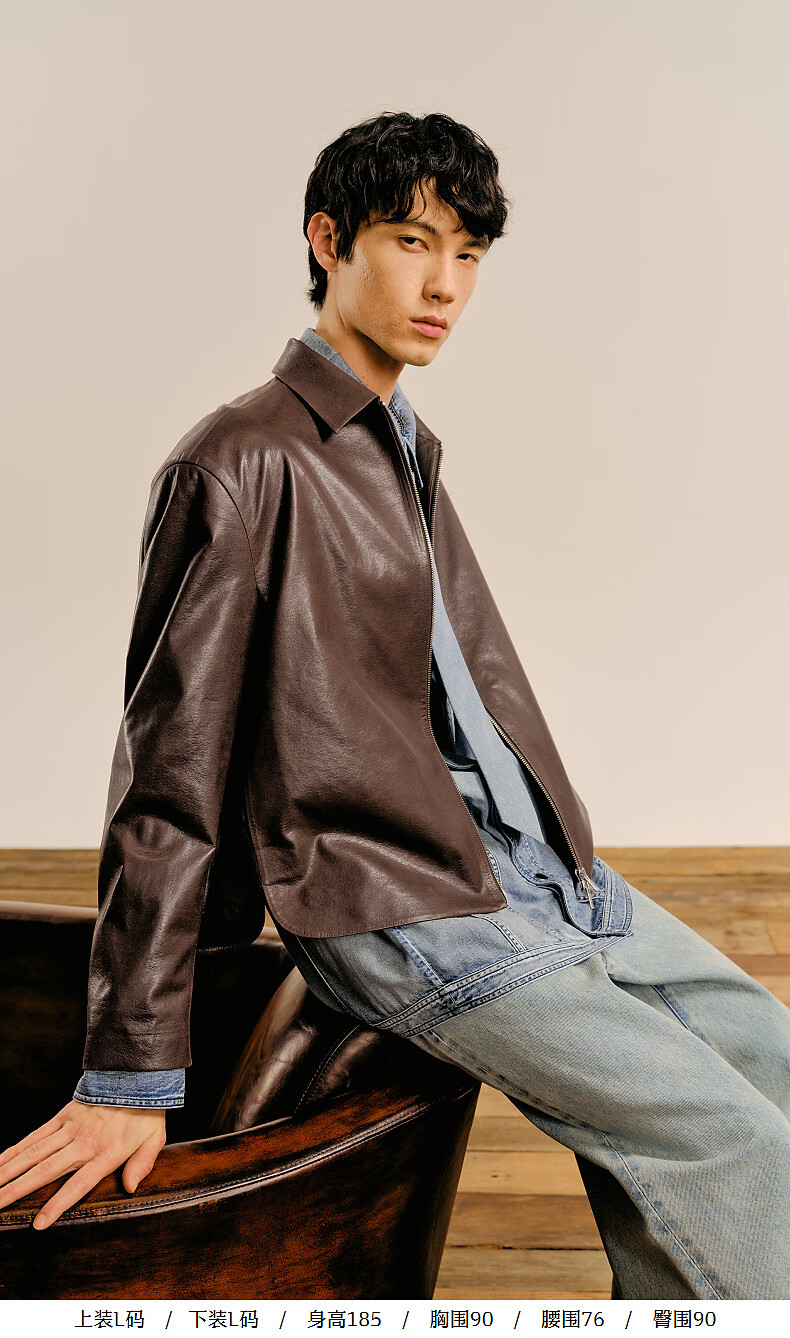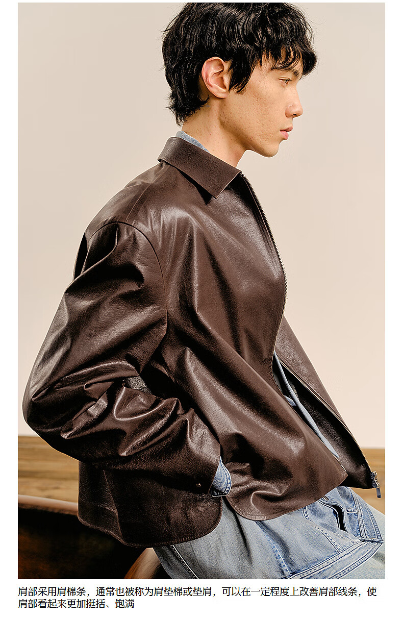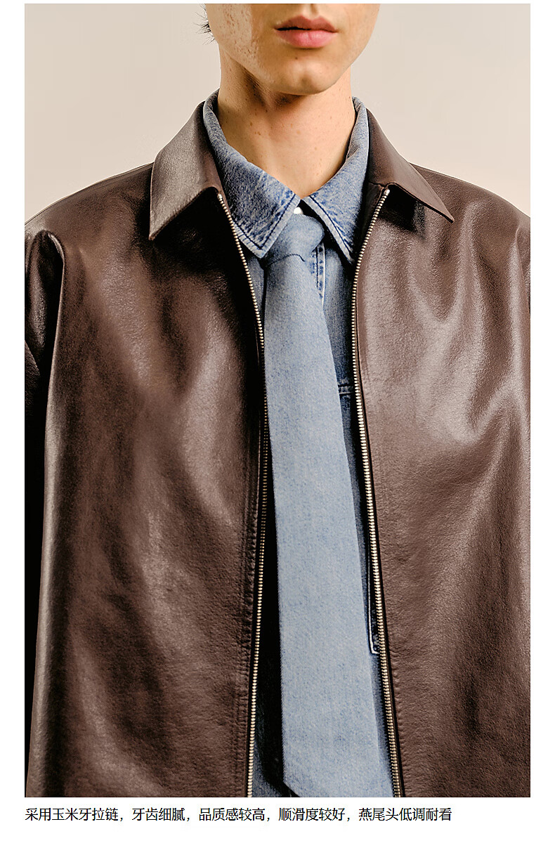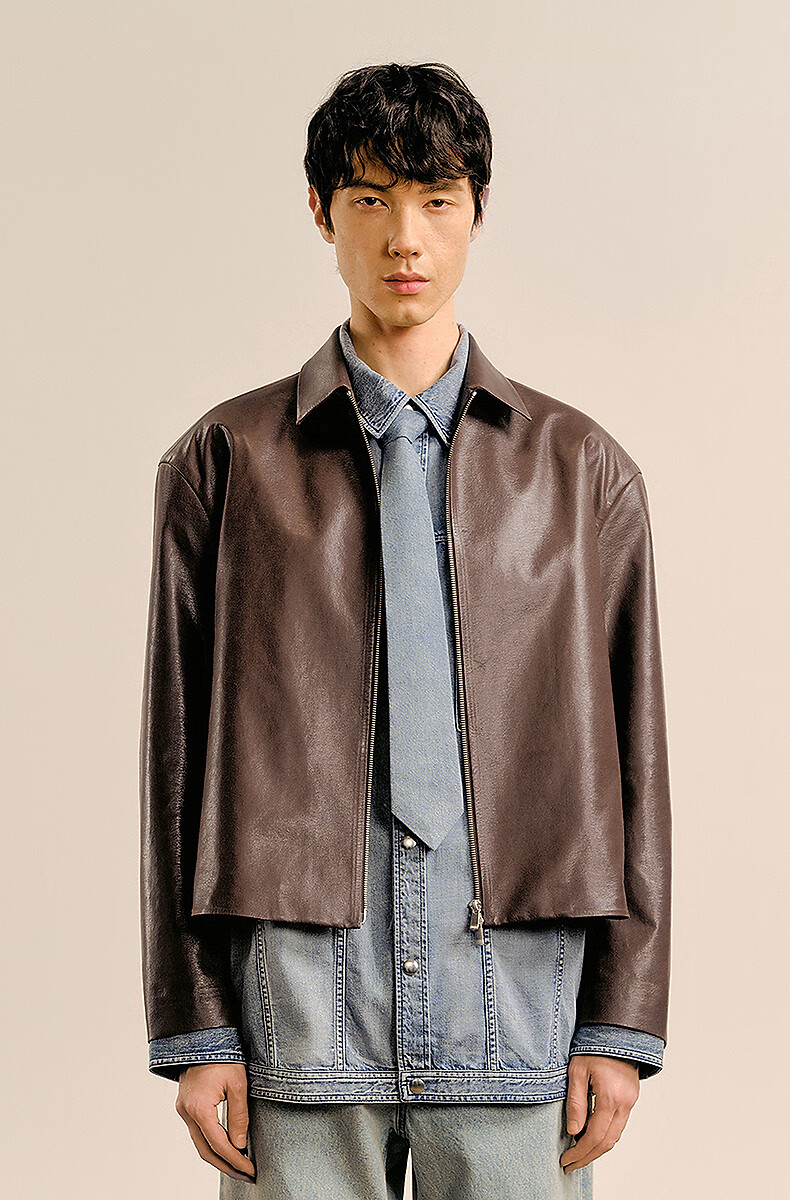 Sketch men's 2025 spring new arrival short eco-friendly imitation leather jacket leather coat long-sleeved avant-garde lapel 9P1A14910 001 black S