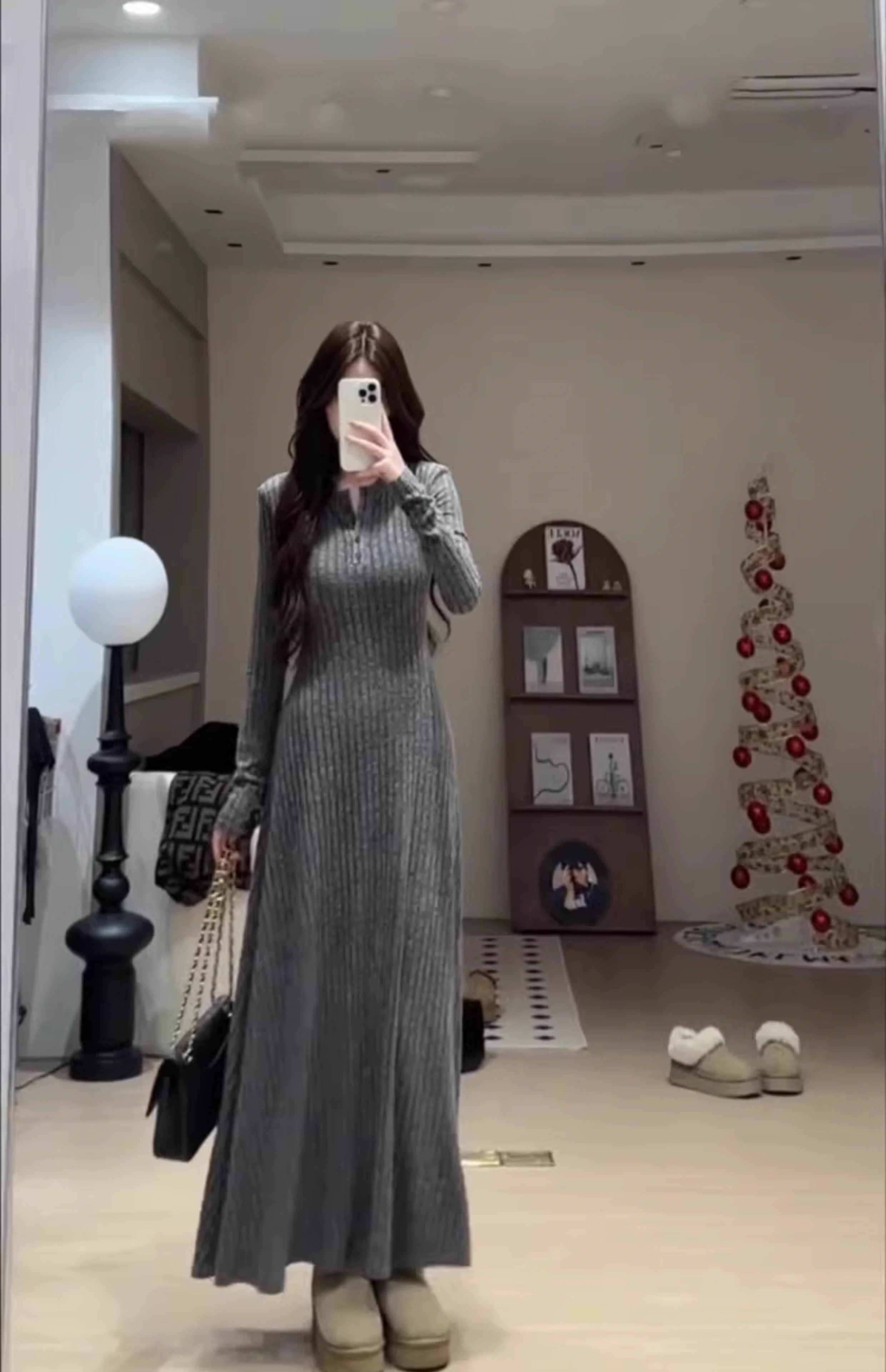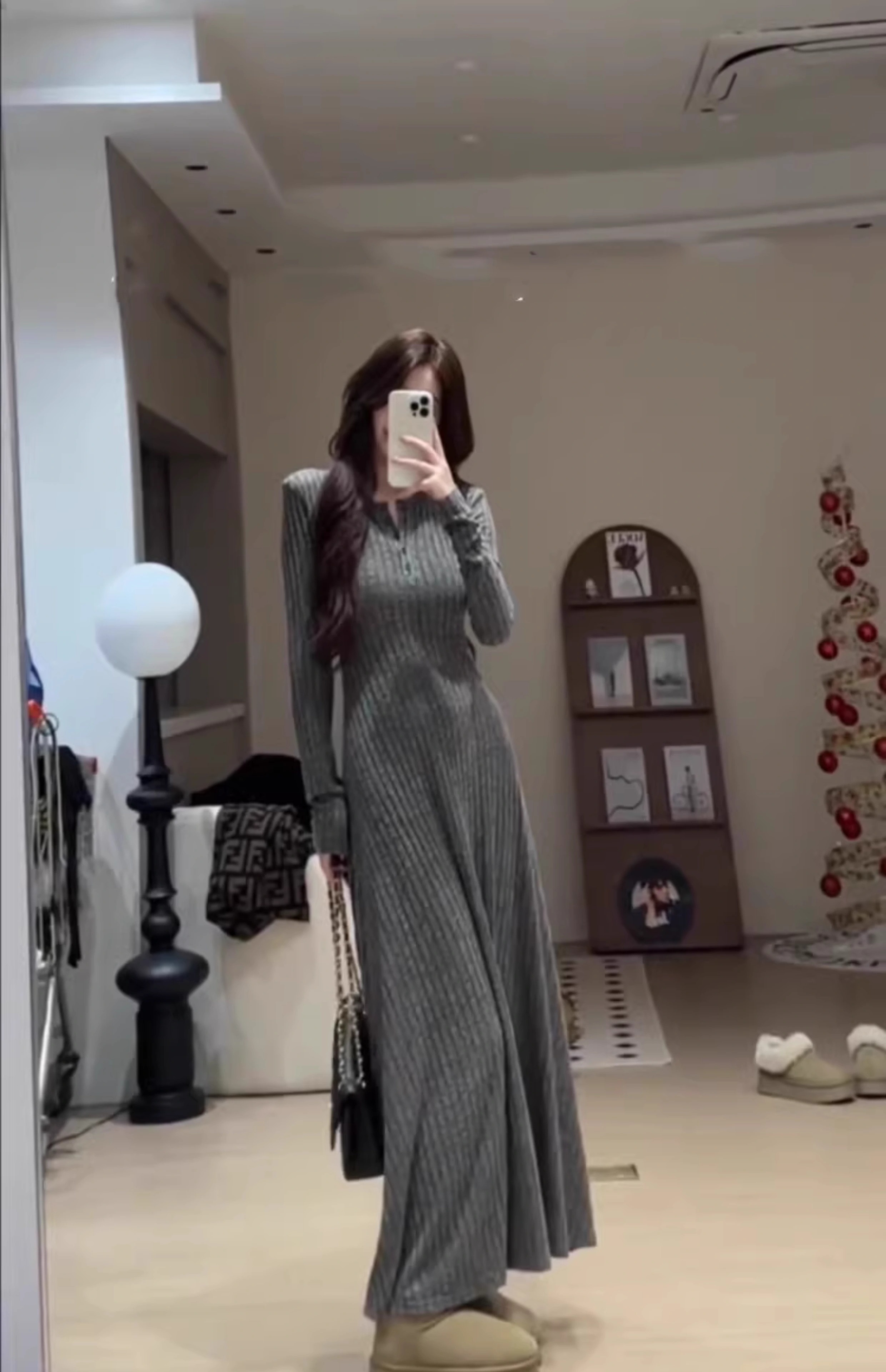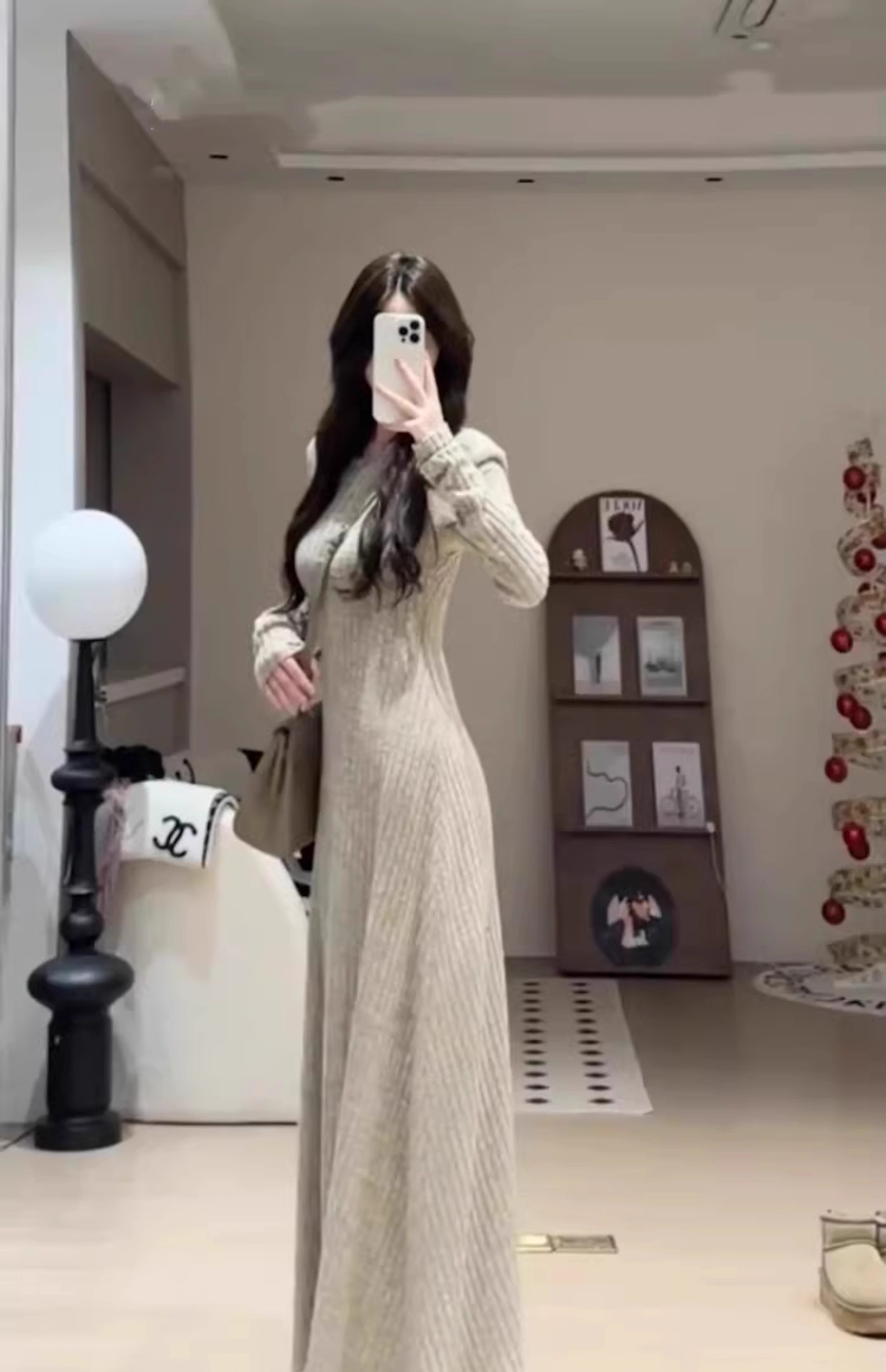 Hao'e's gentle, lazy, high-end knitted dress, spring and autumn temperament long skirt, slim waist and slimming long skirt, oatmeal color M