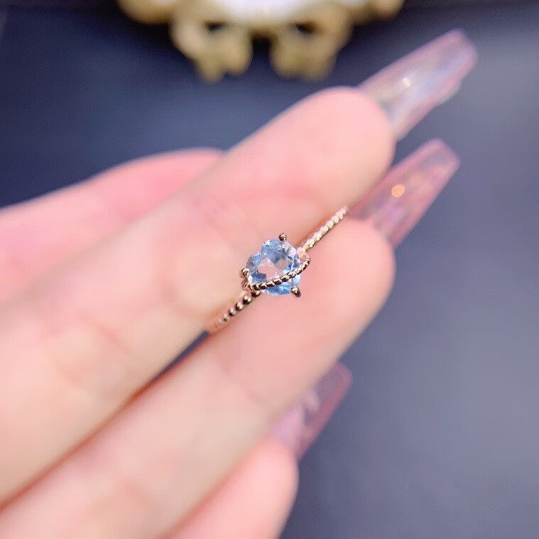 Xuecong's special new natural white aquamarine ring 925 silver gold-plated precision inlaid heart 5*5Mm love ring
