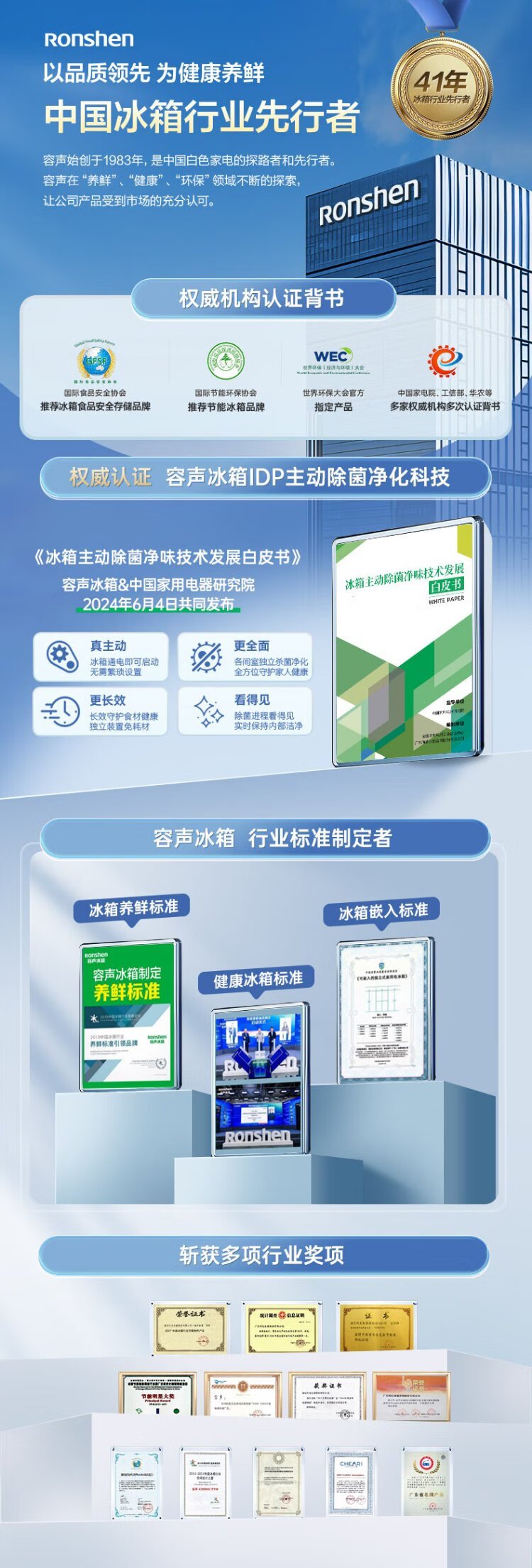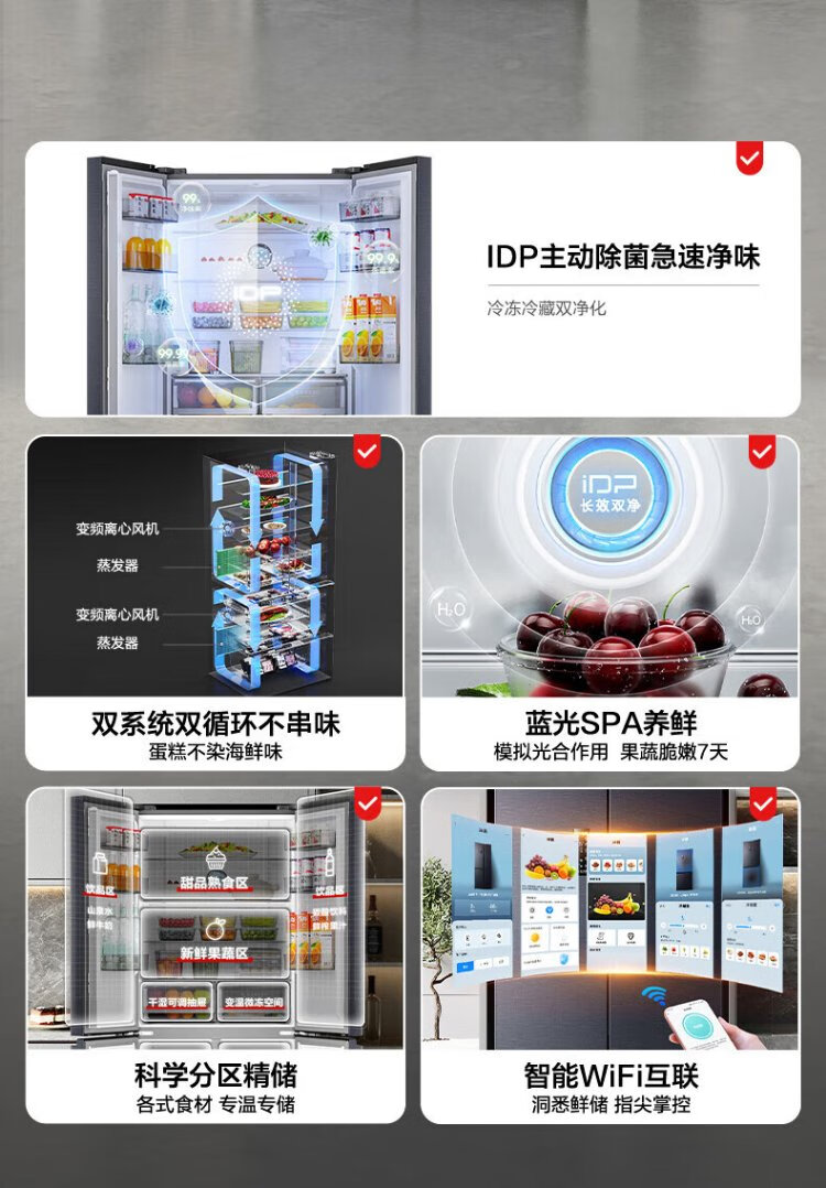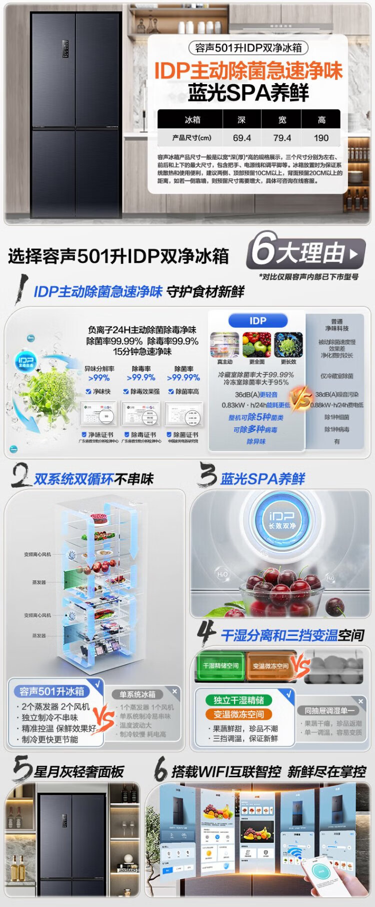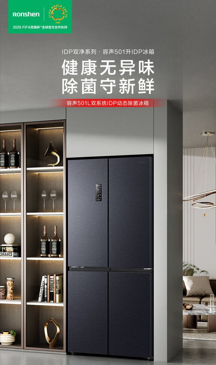Rongsheng 501pro IDP odor-free cross four-door embedded first-class energy-efficiency variable frequency ultra-thin active sterilization dual-cycle dual-system smart refrigerator National subsidy BCD-501WD3FPZ