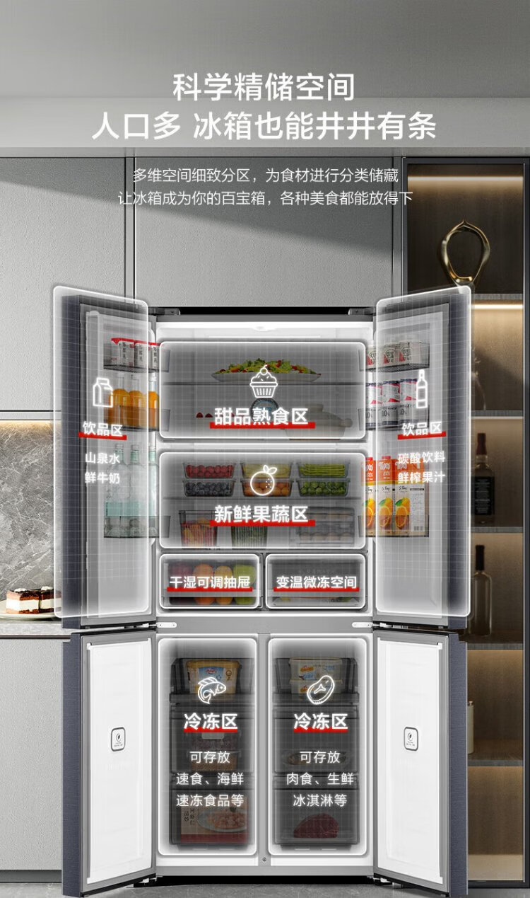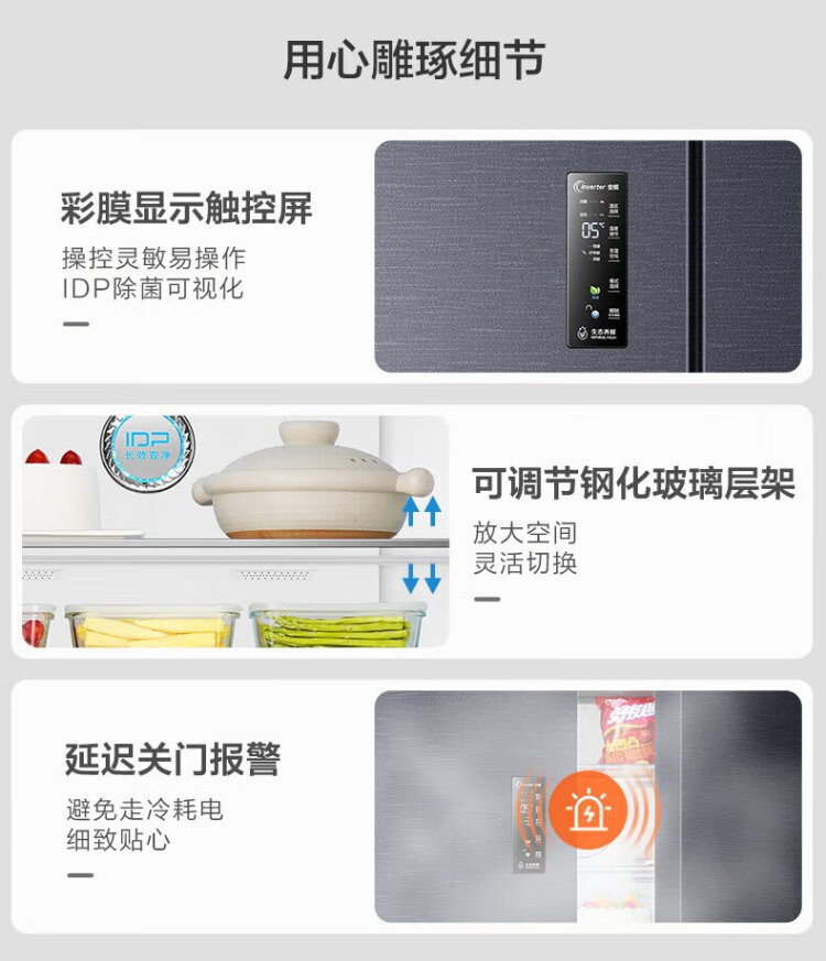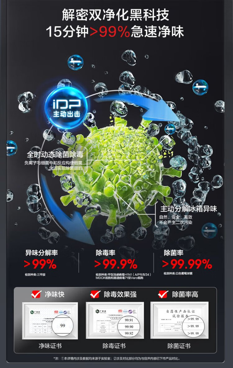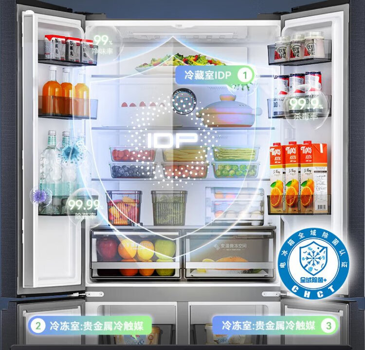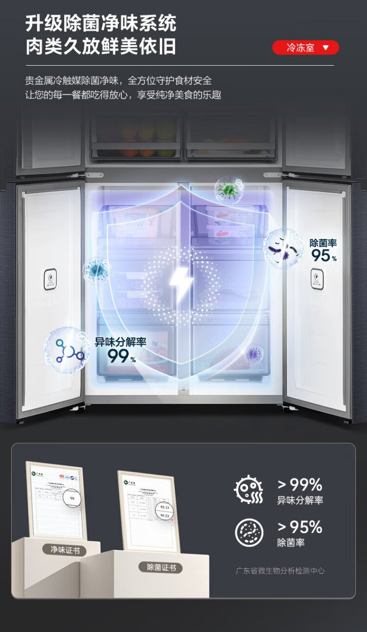 Rongsheng 501pro IDP odor-free cross four-door embedded first-class energy-efficiency variable frequency ultra-thin active sterilization dual-cycle dual-system smart refrigerator National subsidy BCD-501WD3FPZ