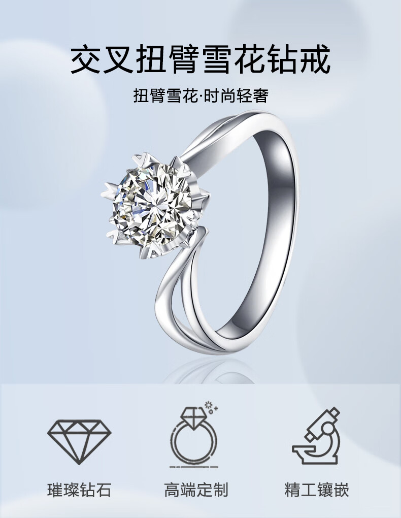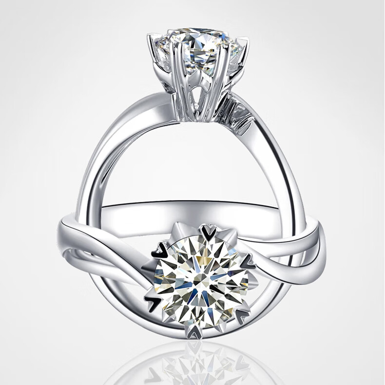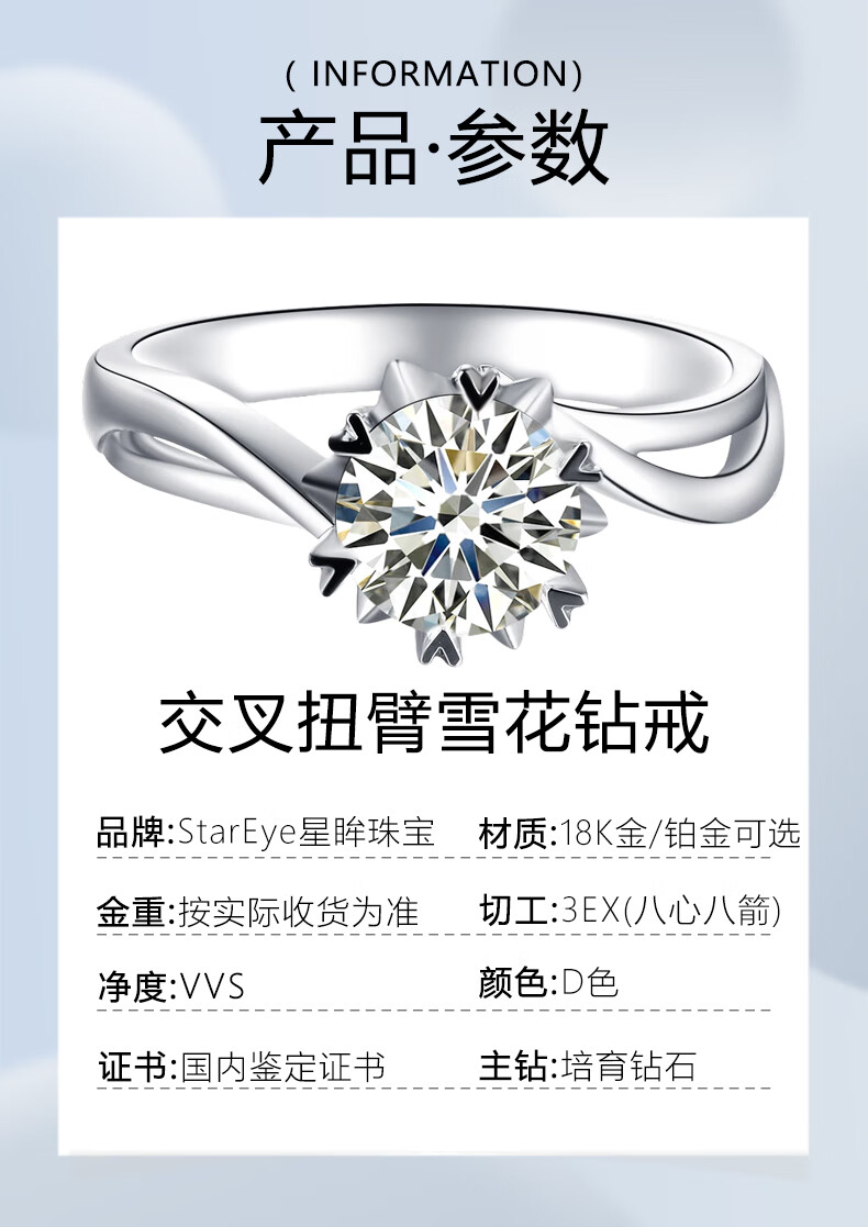 AVHE platinum diamond ring for women artificially cultivated diamond D color VVS twisted arm snowflake wedding gift for lover Chinese Valentine's Day 18K gold diamond ring-1 carat D color VVS