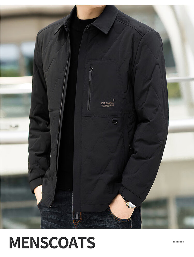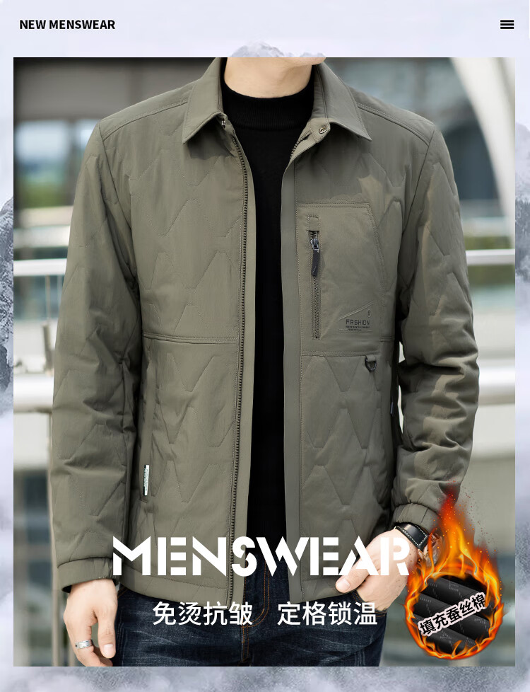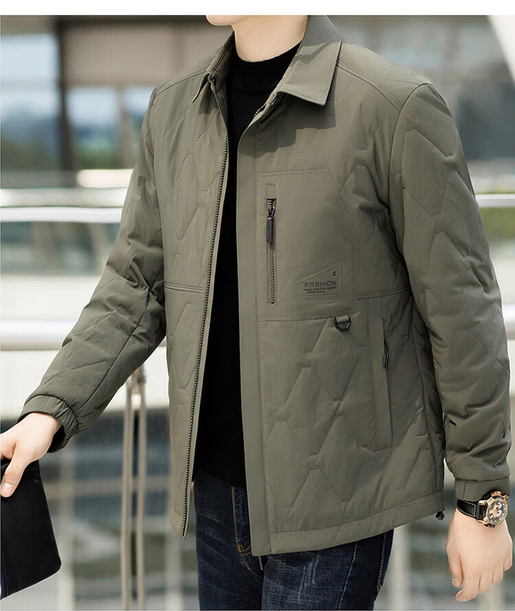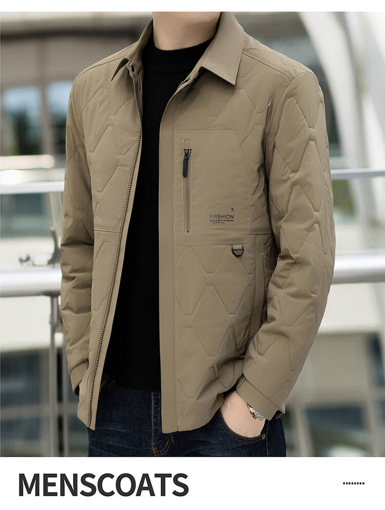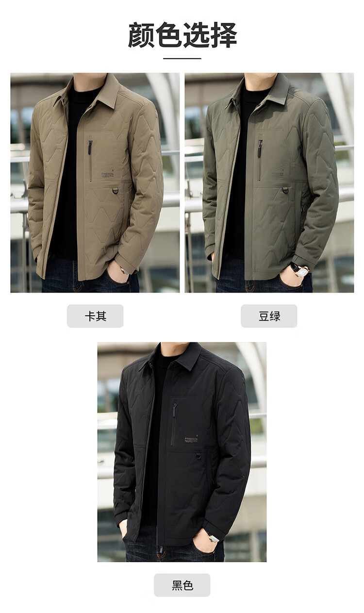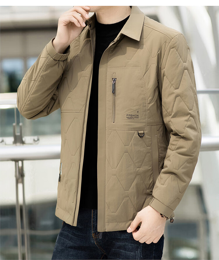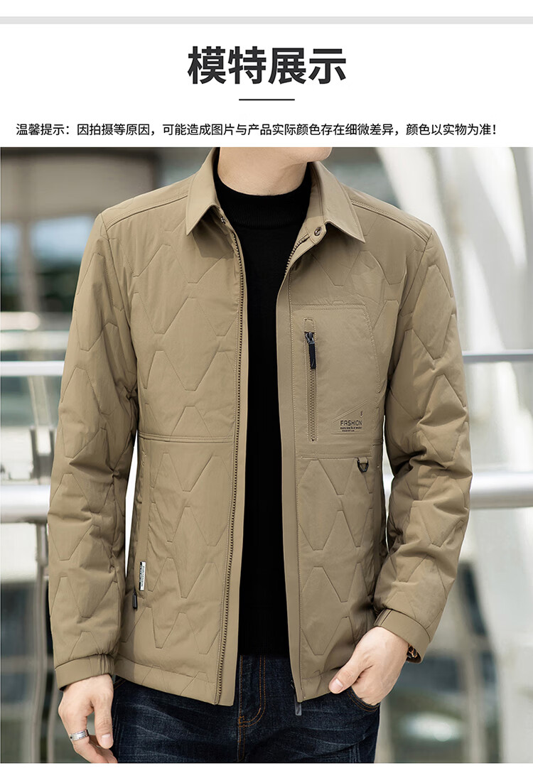 Pierre Cardin autumn and winter casual men's thickened coat warm lapel short jacket men's mulberry silk cotton jacket 2025 new khaki XL recommended 140-155Jin Jin equals 0.5 kg