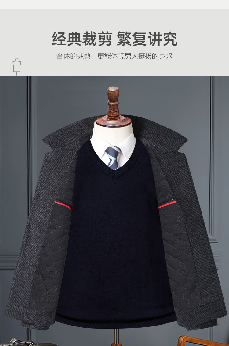 Pierre Cardin (Pierre Cardin) spring, autumn and winter middle-aged men's wool jackets, middle-aged and elderly dads' wool woolen lapel business casual jackets, gray single lining, spring and autumn models 5XL 200 recommended 190-220Jin Jin equals 0.5 kg