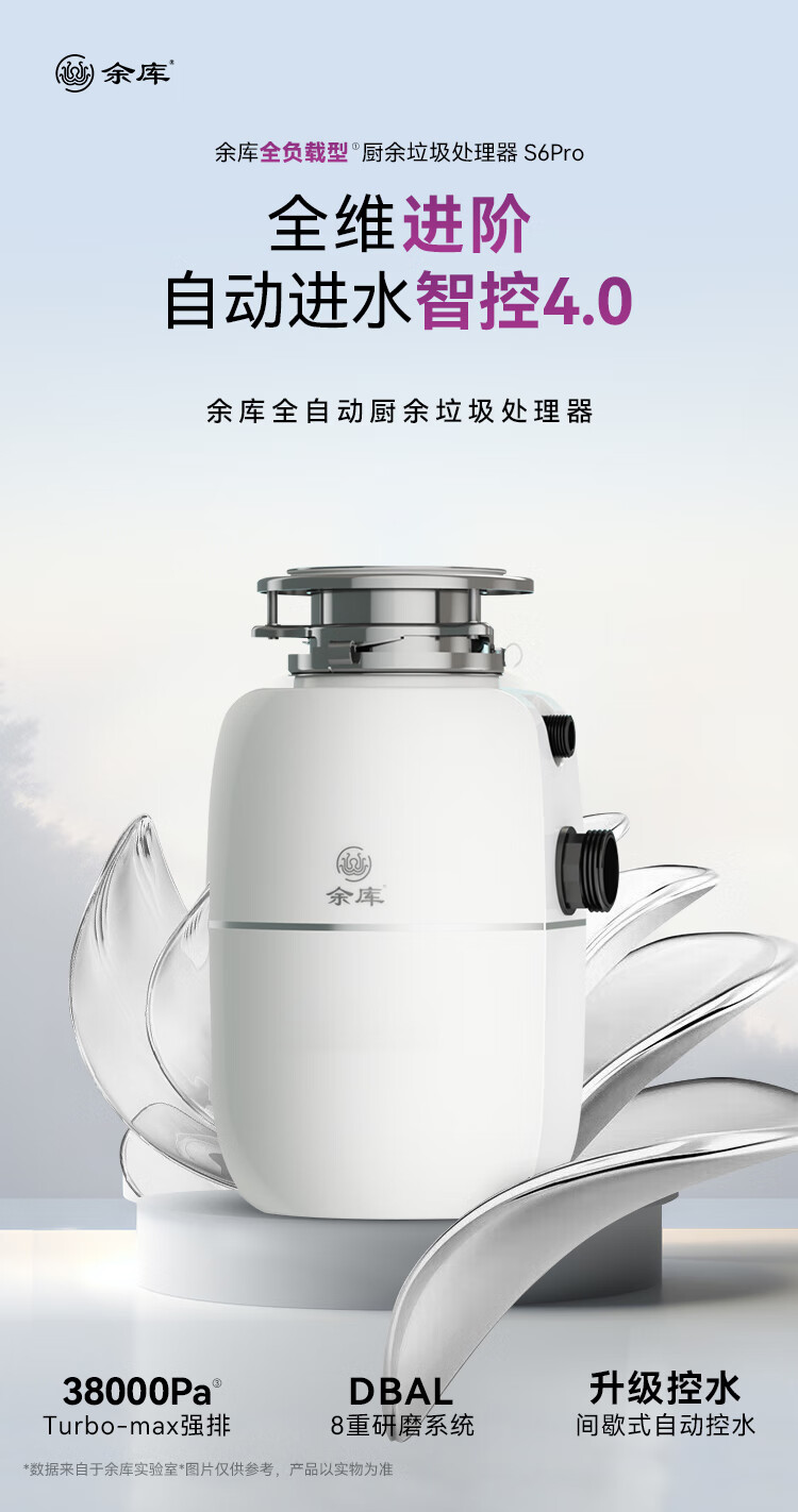 Yuku S6Pro fully loaded garbage disposer fully automatic water inlet household kitchen waste food sink grinder upgraded model S9Pro cloud white fully loaded