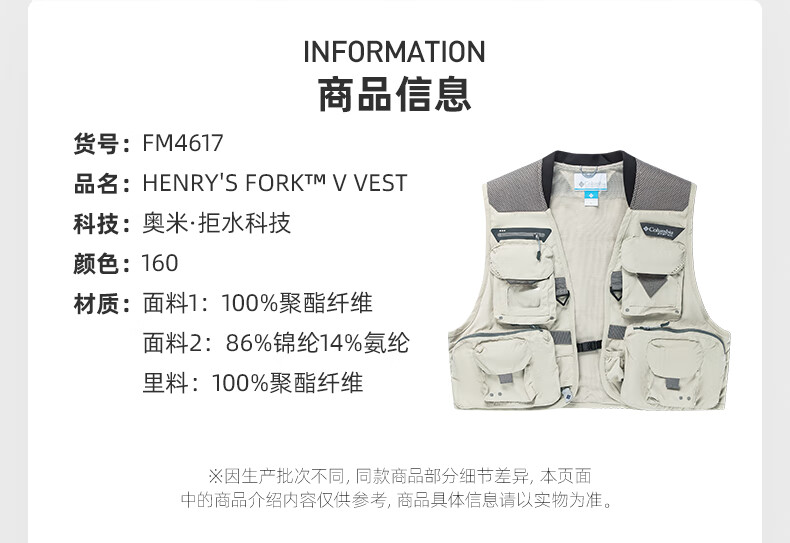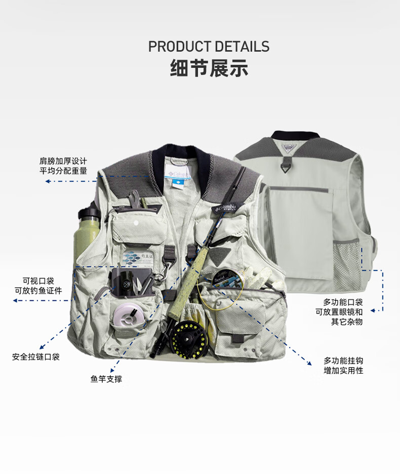 Columbia Outdoor 25 Autumn and Winter Men's Fishing Series Water-Repellent Dry Sports Vest FM4617 160 Loose Fit S (170/92A)