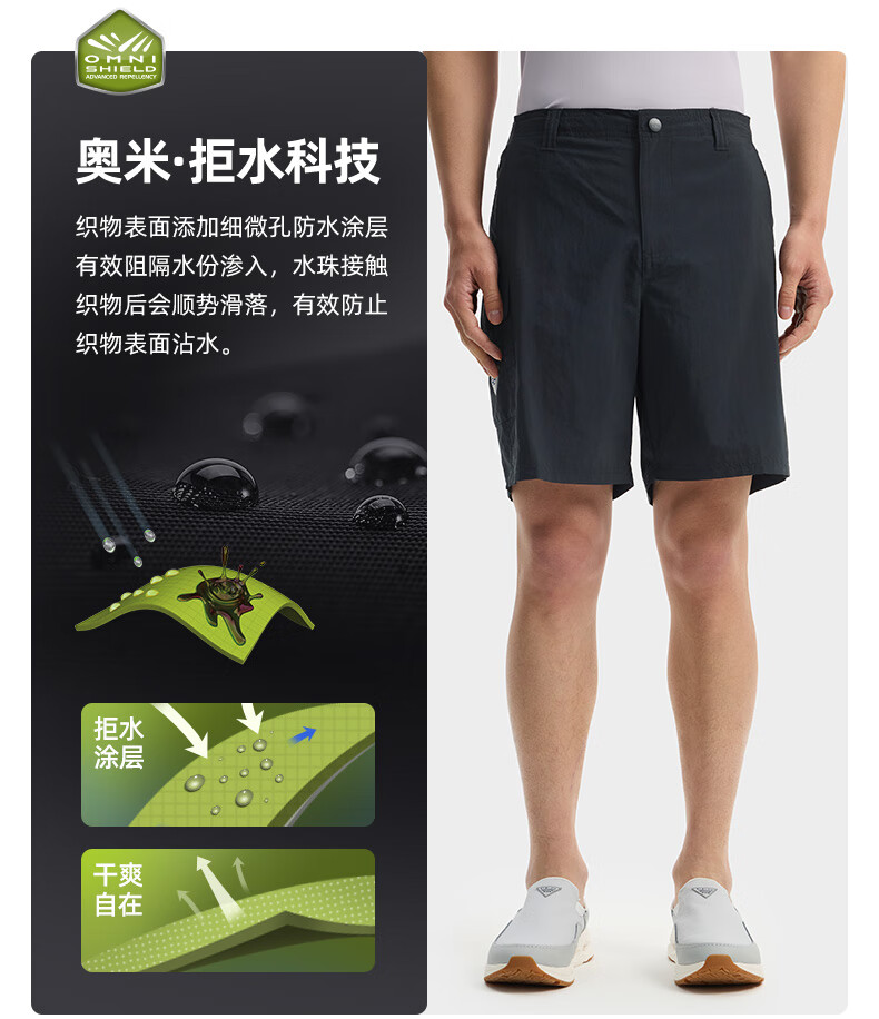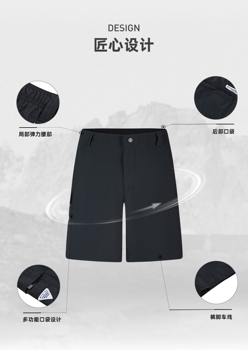 Columbia Outdoor 25 spring and summer new men's fishing series water-repellent dry sports shorts FM5618 010 XL (185/82A)