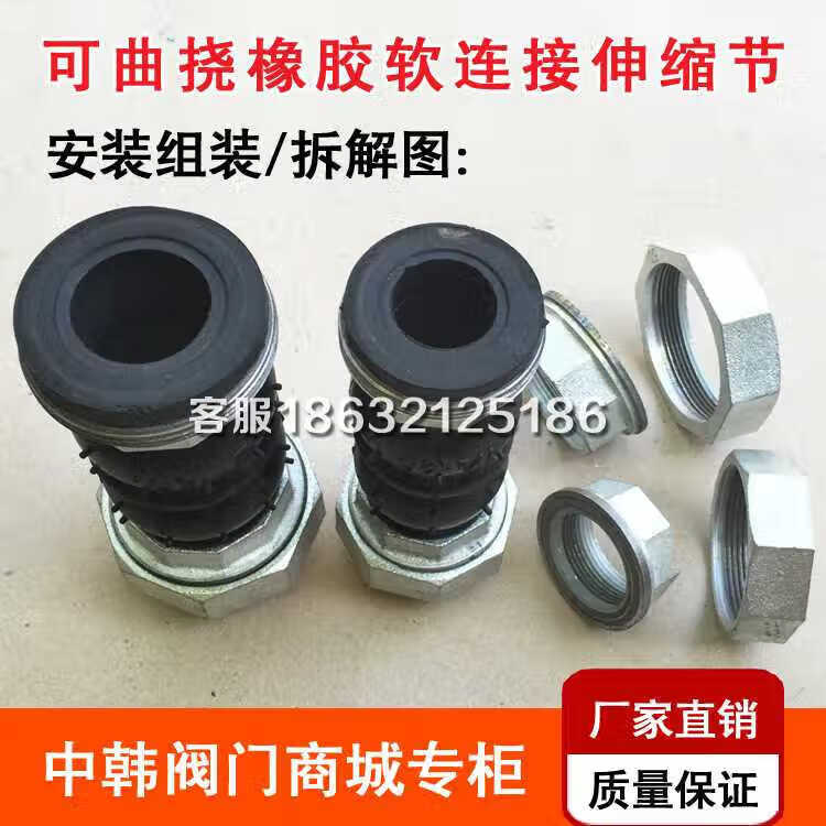 Wire rubber soft joint soft connection Internal thread expansion joint expansion joint Heating fan pipe DN80/3 inch diameter/GB 16 kg