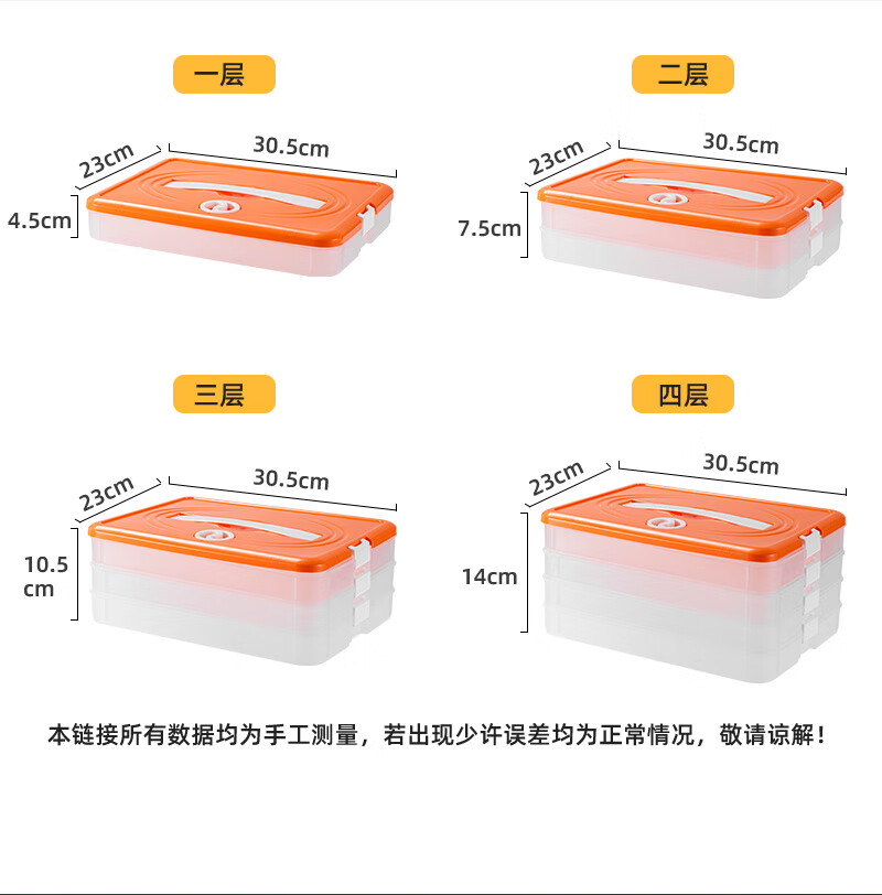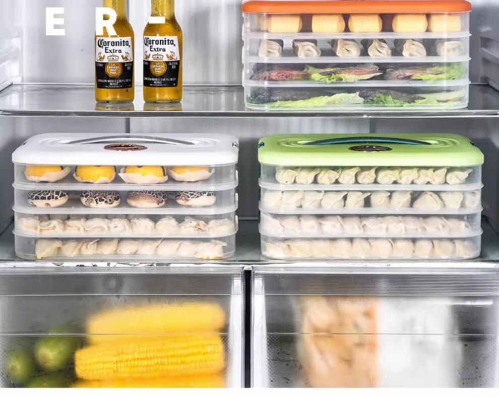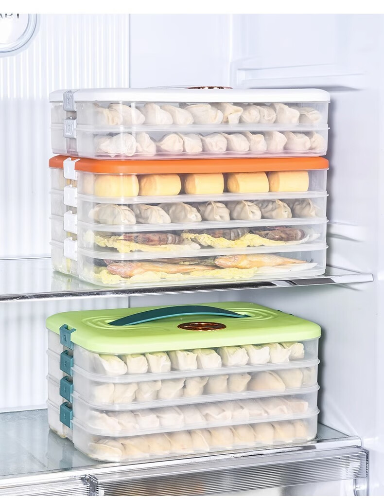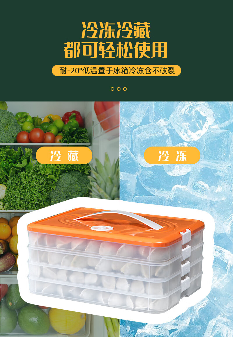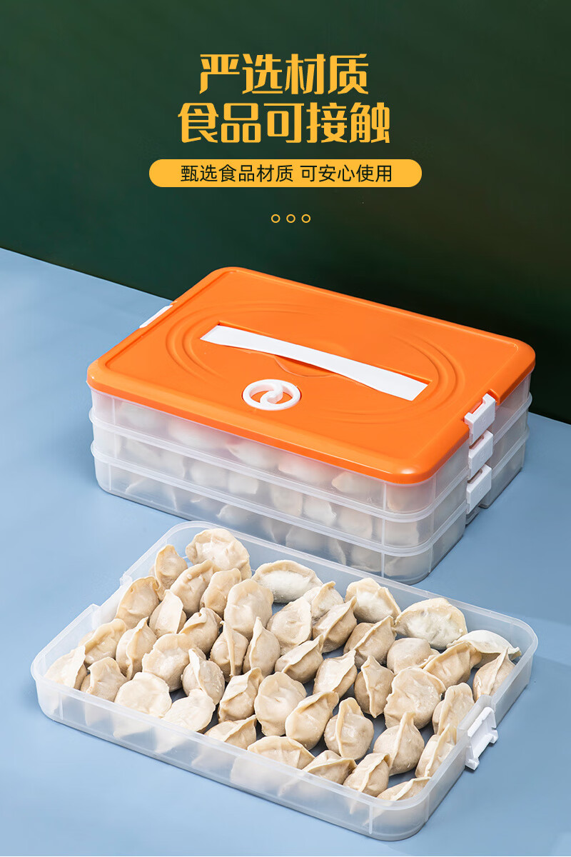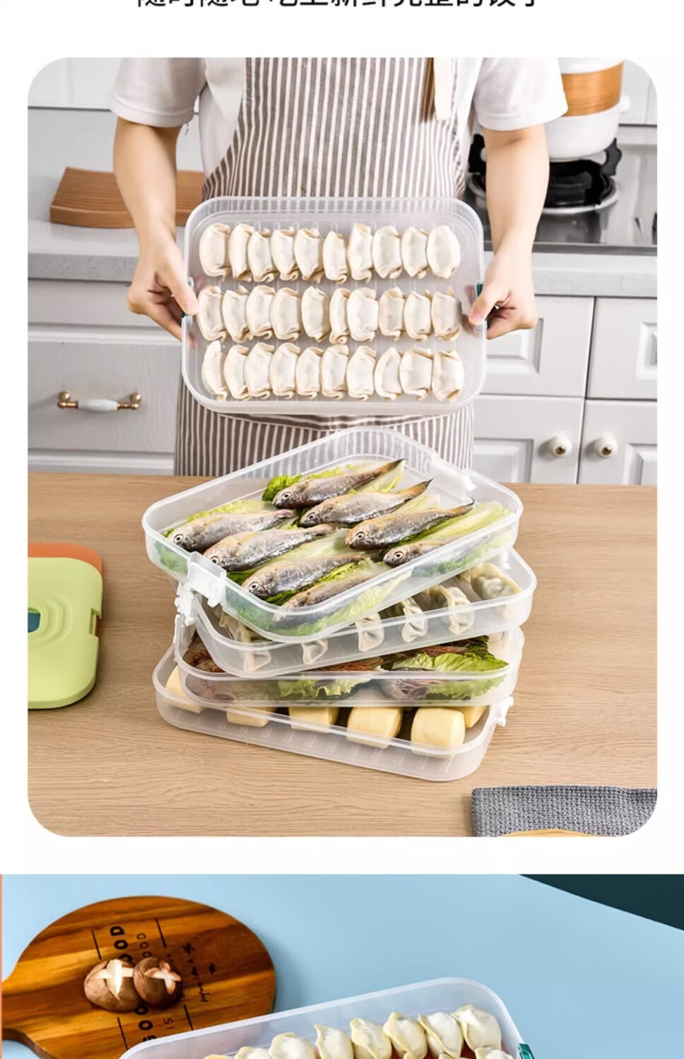Qinkai Dumpling Box Special Frozen Dumpling Box Refrigerator Storage Box Household Large Capacity Quick Frozen Chaos Frozen Fresh-keeping Box Multi-layer PP Material-Timed Fresh Lock Dark Green One Layer Zero Cover Holds 20 Dumplings Uncovered Model
