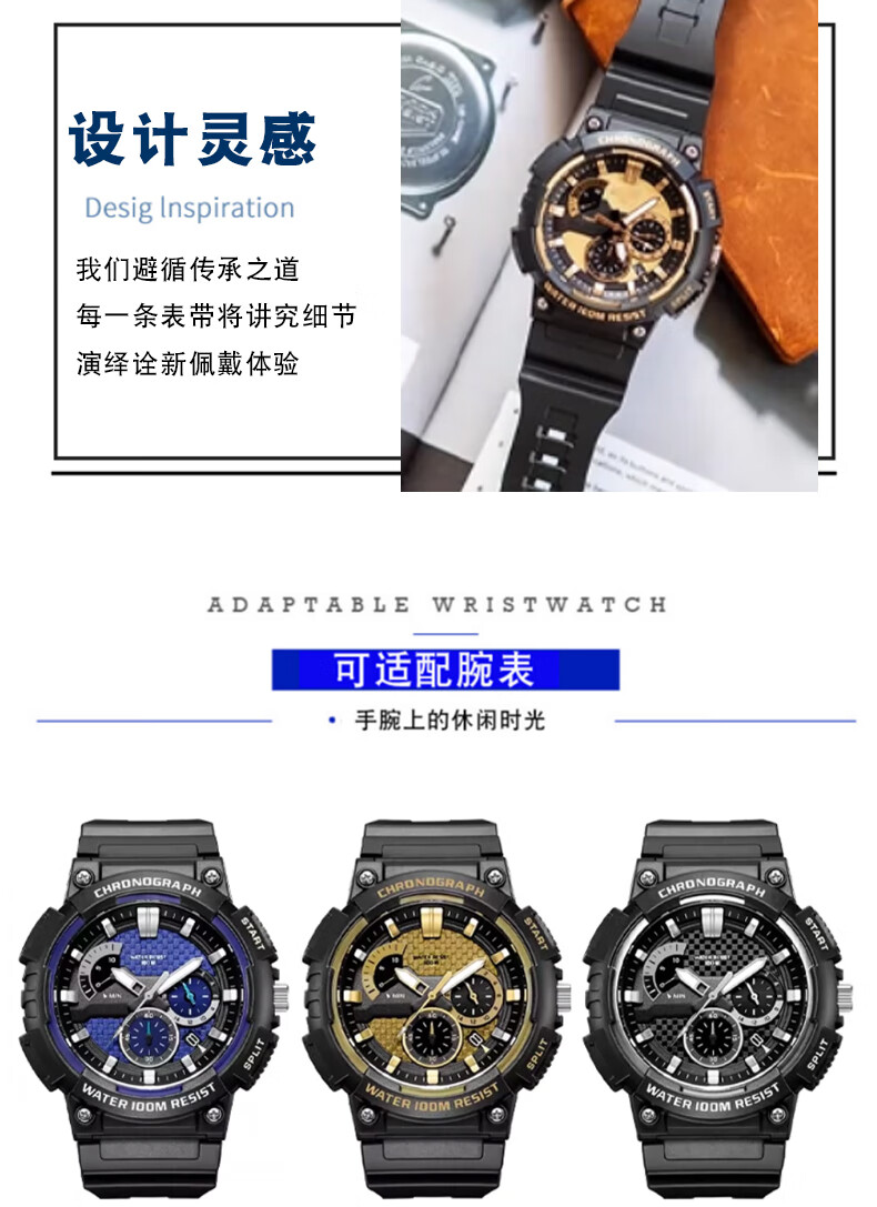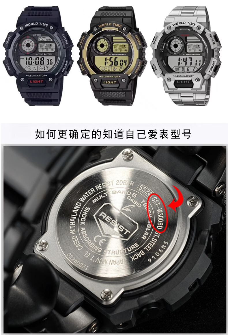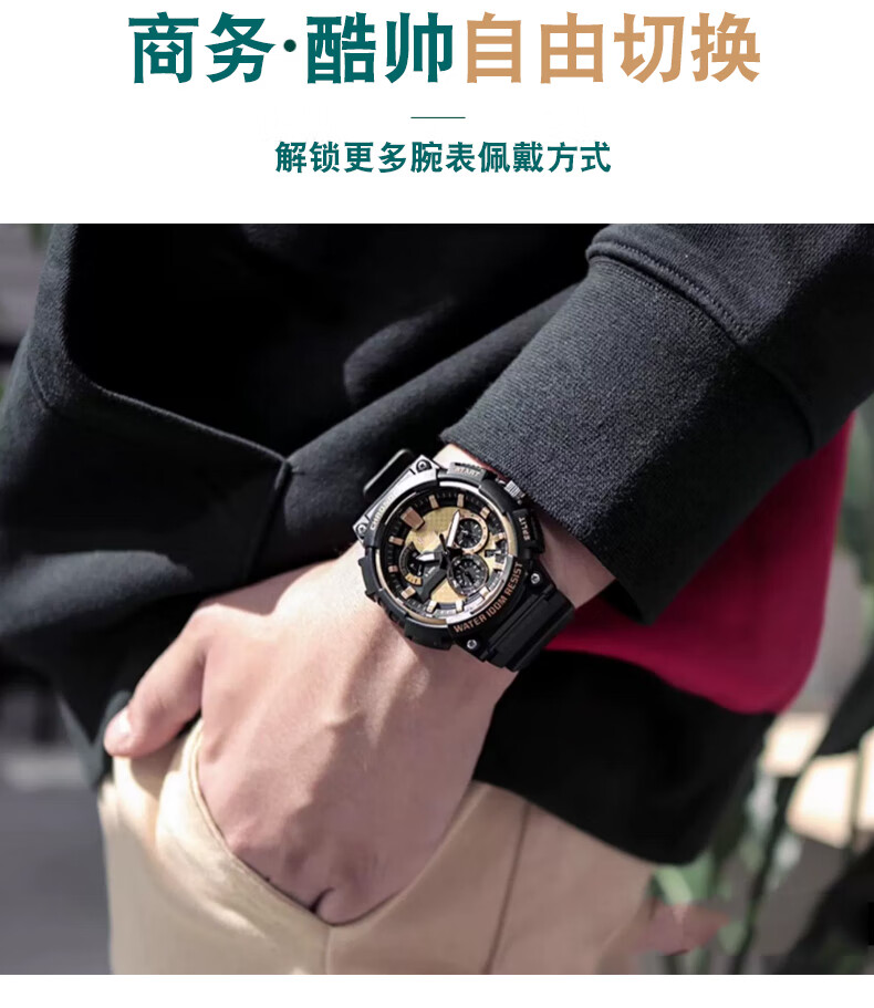 Shengqin is suitable for G-shcok Casio MCW-200H black gold model AE-1400 waterproof sports soft resin silicone watch with protruding bracelet replacement accessories men's 20mm black-black buckle 20mm