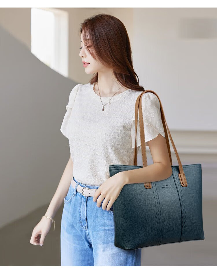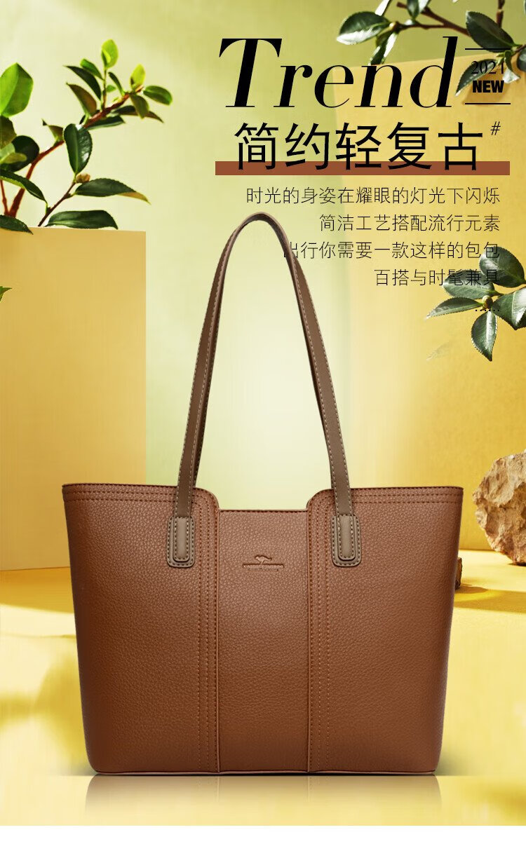 Kangaroo Birthday Genuine Leather Women's Bag 2025 New Large Capacity for Mom Fashionable Shoulder Crossbody Large Bag Soft Leather Tote Bag Khaki (Gift Box + Hand Bag Card Bag) Large Bag (Length 33-Thickness 11-Height 28 cm)
