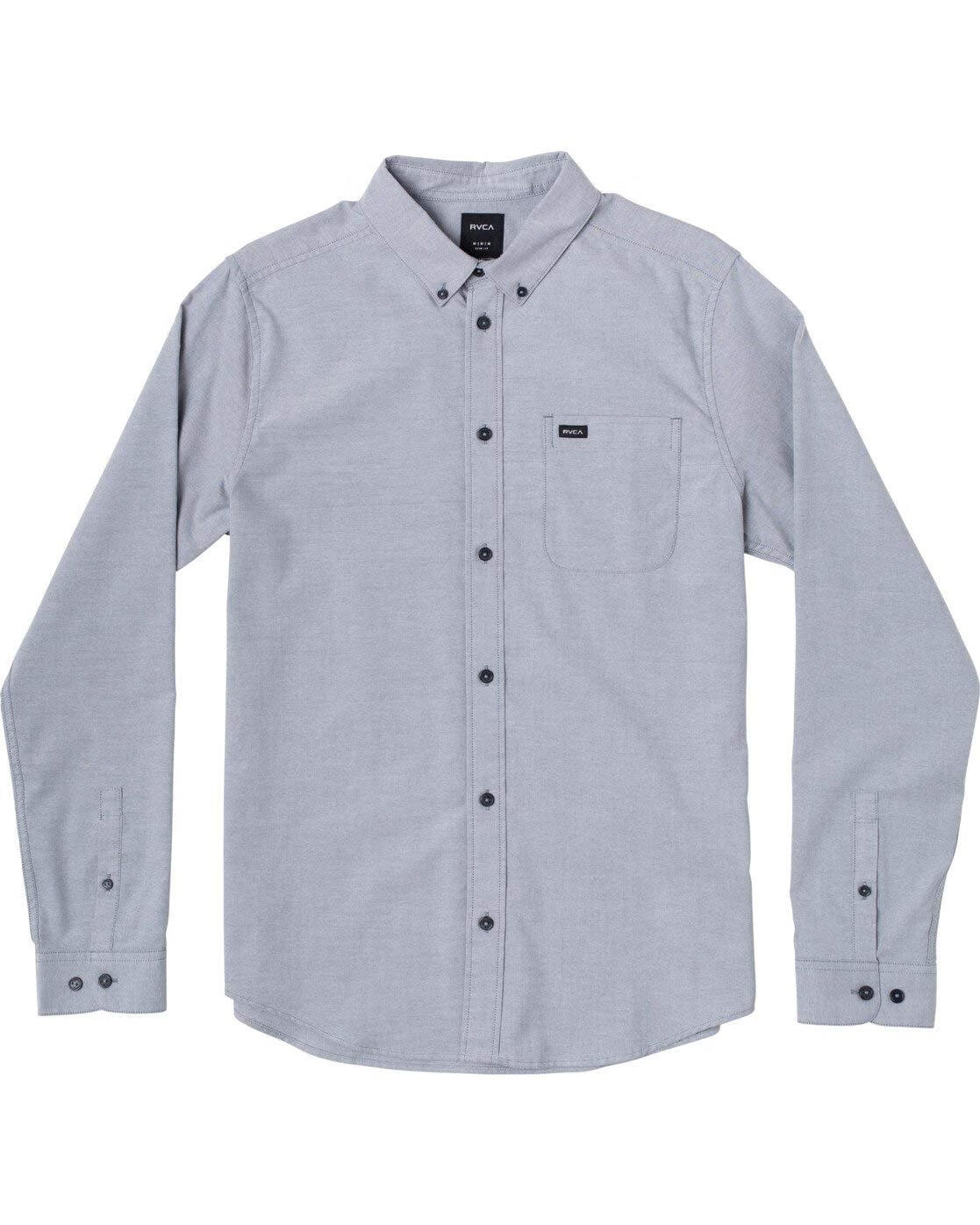 RVCA Boys Thatll Do Stretch Long Sleeve Woven Button-Down Shirt Pavement Medium