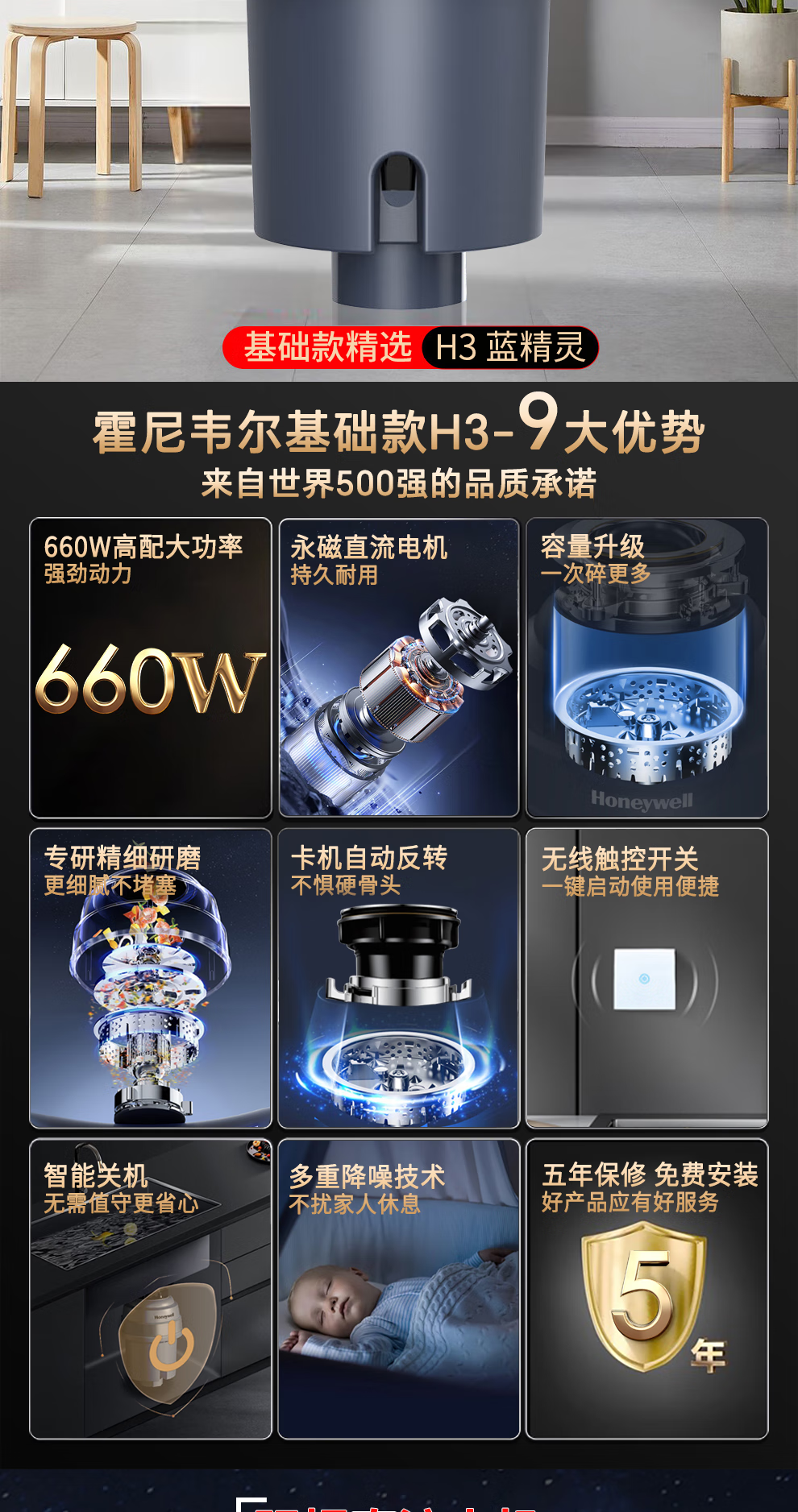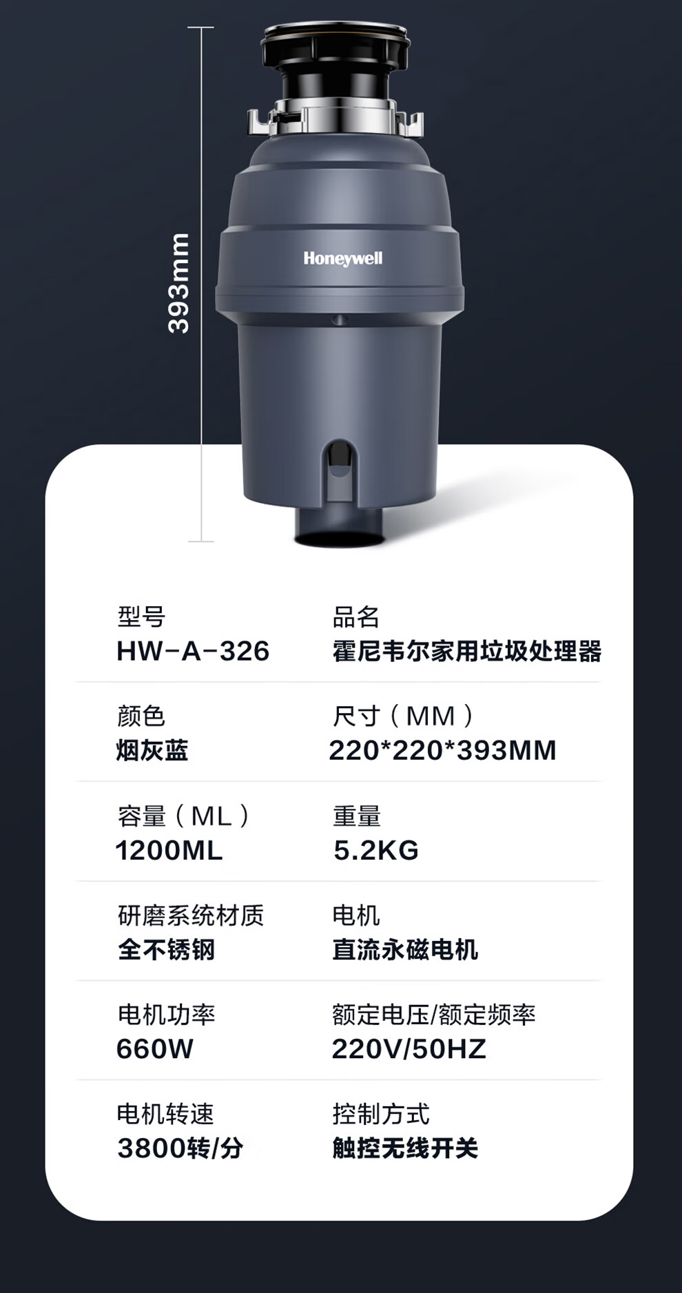 Honeywell/Food waste disposer kitchen household food waste grinder H3 HW-A-326
