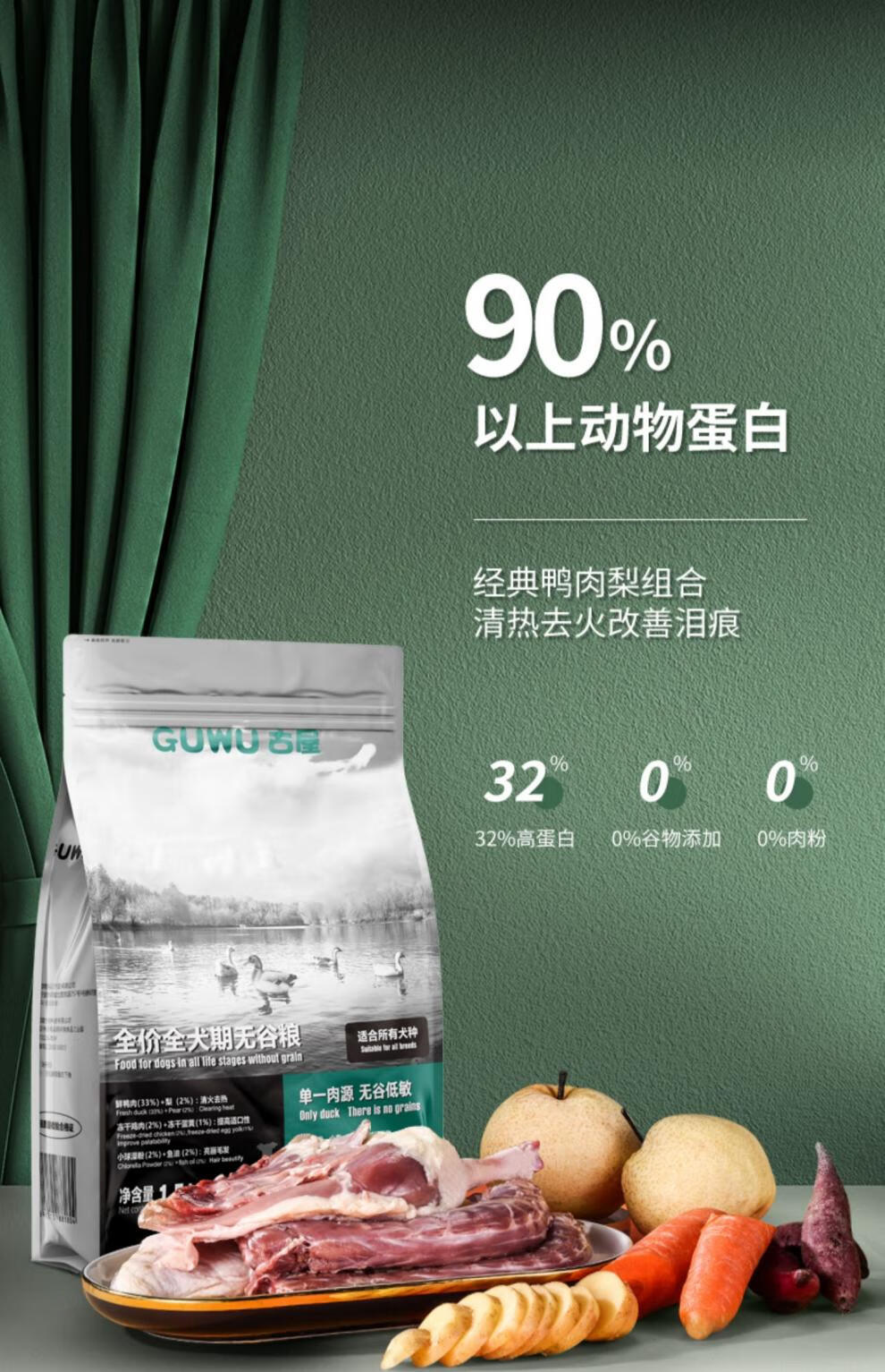 OIMG Furuya Grain-Free Dog Food, All Dog Stages, All Dog Breeds, General Food, Single Meat Source, Hypoallergenic, Dilute Tears, Duck Meat Pear, Duck Meat Pear 1.5kg