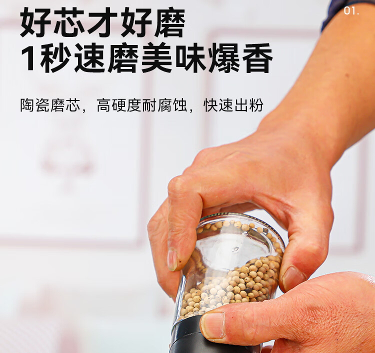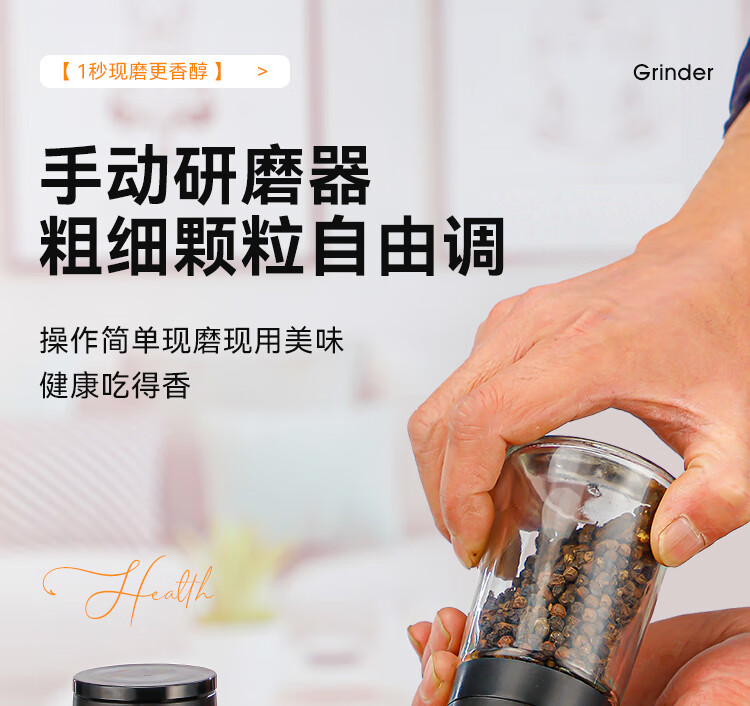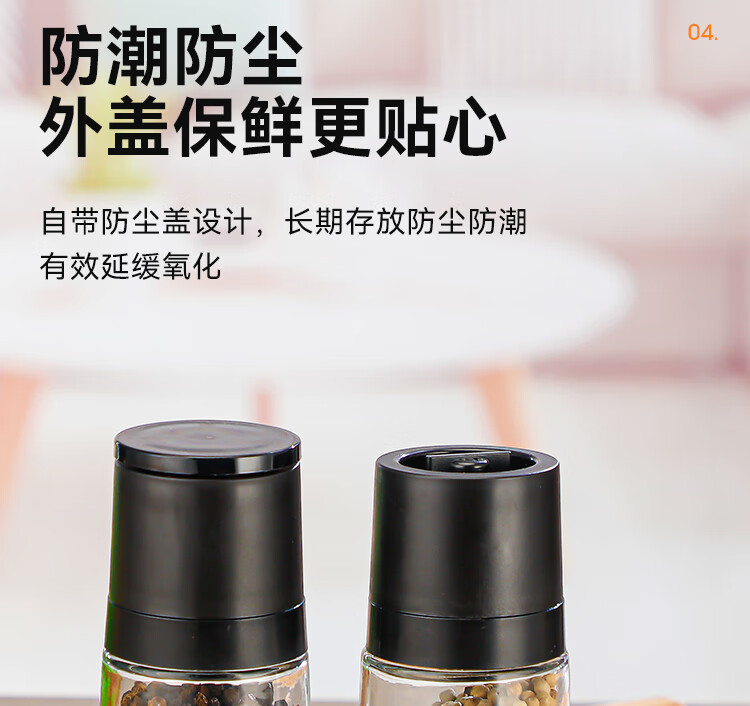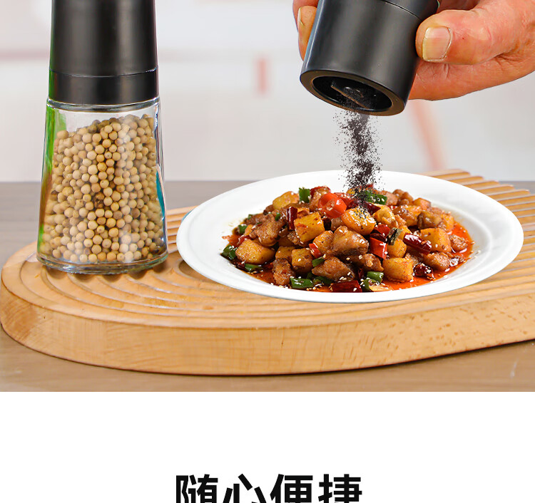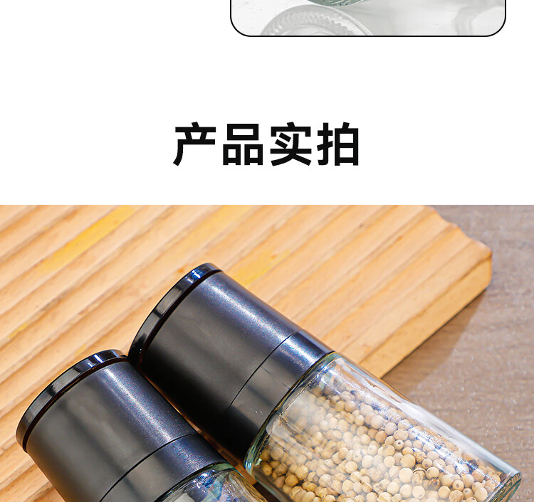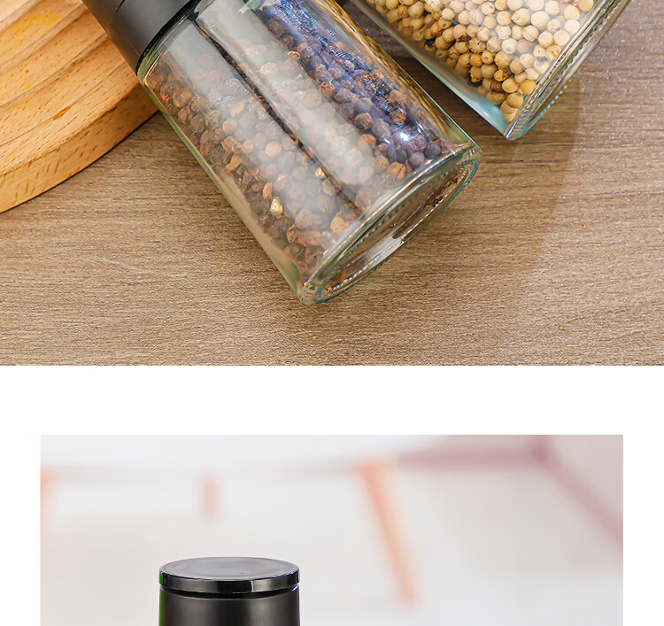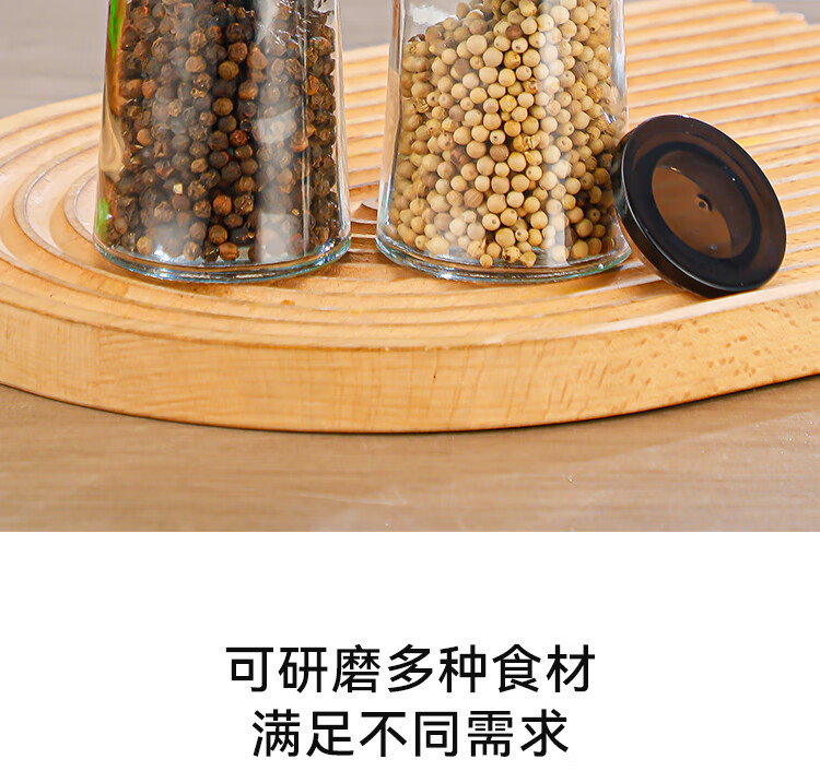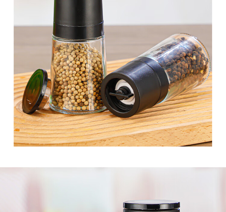Pepper grinder manual pepper salt shaker chili powder grinding bottle kitchen seasoning bottle seasoning bottle black lid 2 pieces