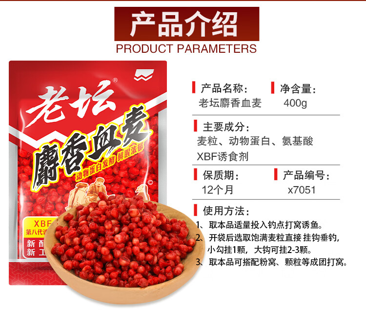 Western style Western style musk blood wheat wild fishing crucian carp, carp, grass carp Laotan fermented nesting material strong fragrance hook granular bait Laotan blood wheat 400g