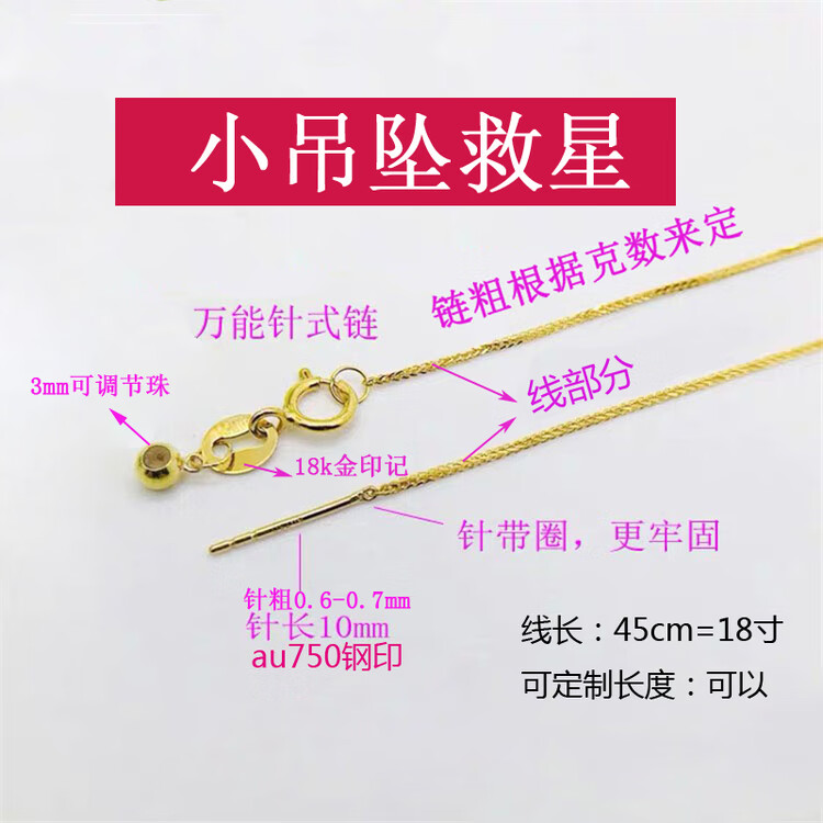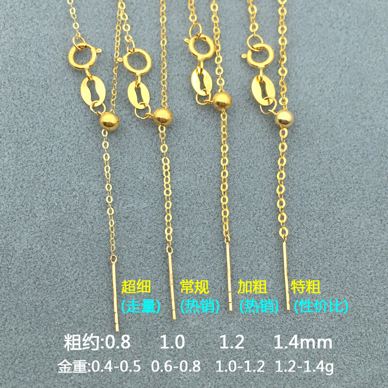 Yan's 18k gold needle-type adjustment chain universal chain bead clavicle necklace women's K gold universal Chopard pin chain plain chain accessories bold selection Chopard weight 1.5-1.7g thick about 1.2 Necklace pure 18K rose (fake one pays 10 45 adjustable