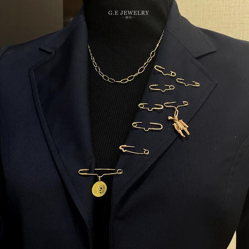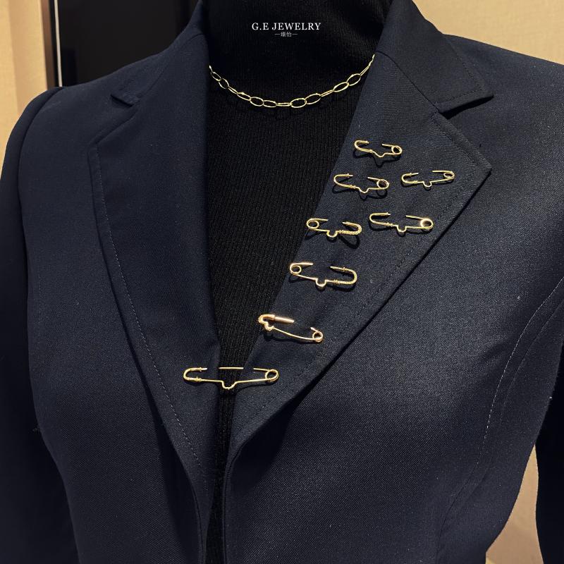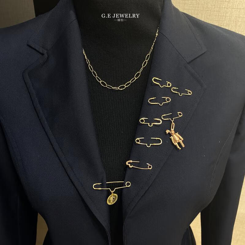 Yan's 18K gold brooch accessories corsage pin 75 paper clip multi-purpose pendant sweater dress with high quality 18K yellow (light yellow) 30mm diamond brooch accessories (pendant not included)