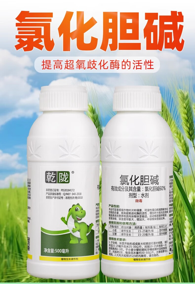 Ganlong Ganlong 60% Choline Chloride Aqueous Wheat Sweet Potato Growth Regulator Pesticide Growth Regulator Plant Growth Agent 500ml*20 bottles/box